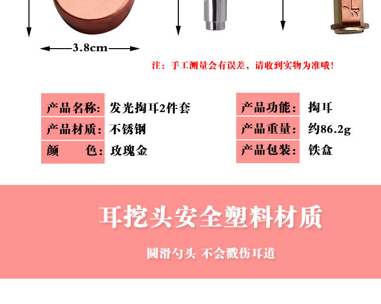 【推荐理由】:专业掏耳组合套装,发光挖耳器,带镊子,软硬适中,雪亮白光,看清耳道,干净不伤耳,百万妈妈的选择,赠运费险