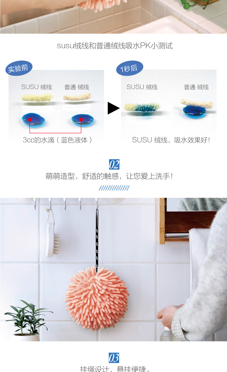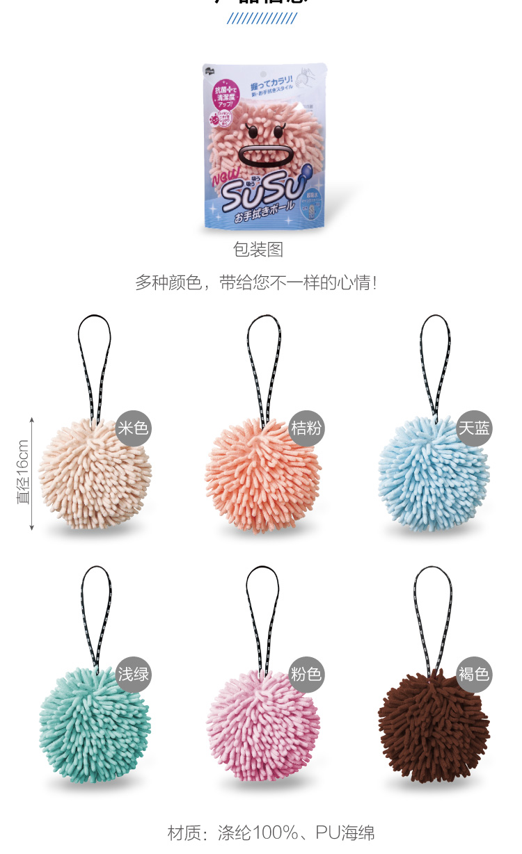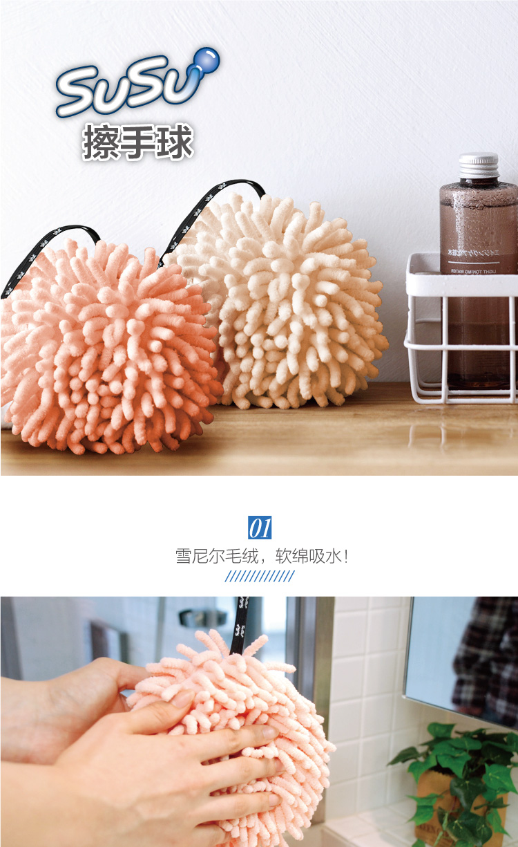 康多多日本吸水雪尼尔可爱挂式擦手球厨房卫生间擦手毛巾抹布susu