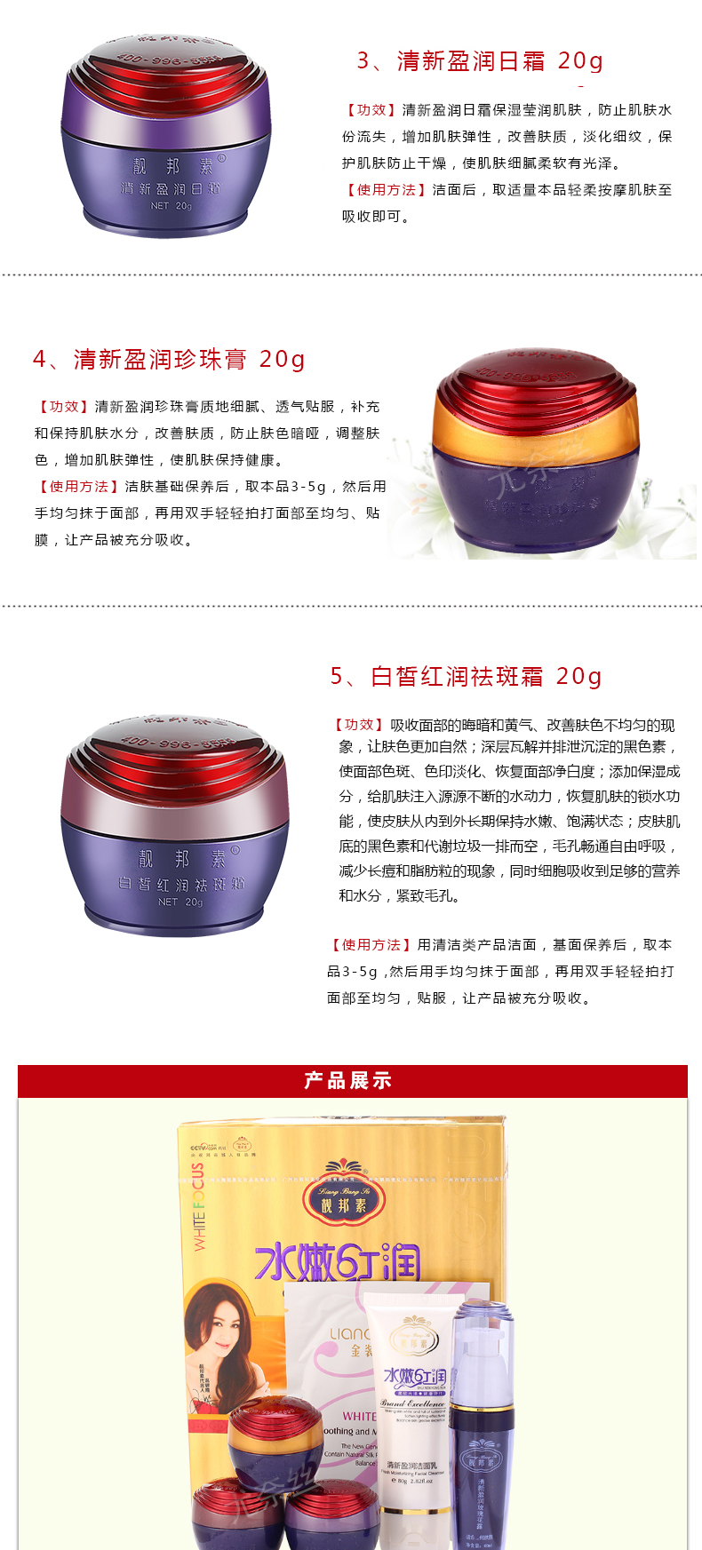 正品靓邦素白里透红祛斑套装3+2五件套美白补水霜化妆品去斑产品