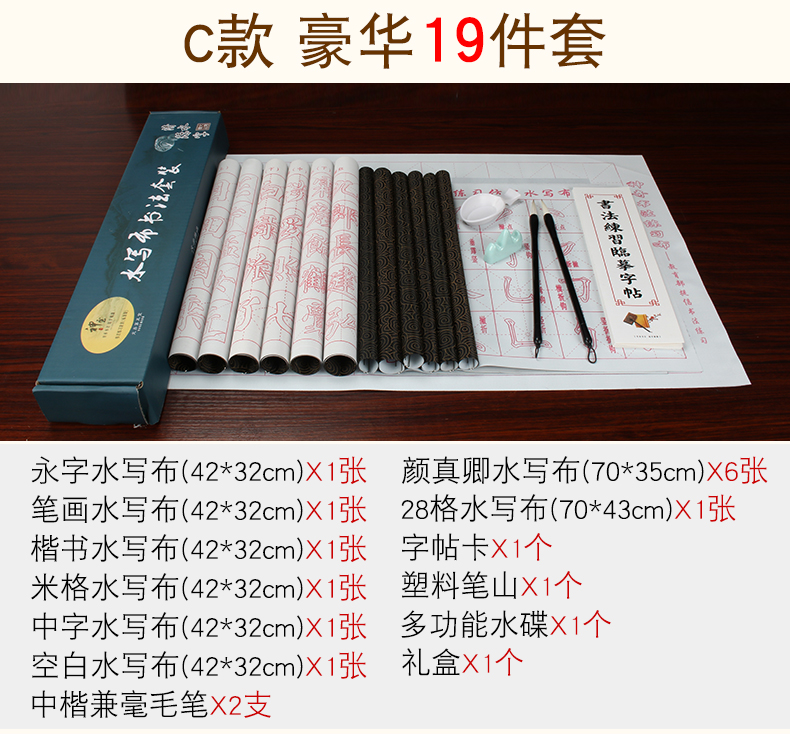 练毛笔字帖水写布套装 儿童小学生初学者楷书毛笔字书法入门沾清水练习万次加厚颜真卿多宝塔临摹文房四宝
