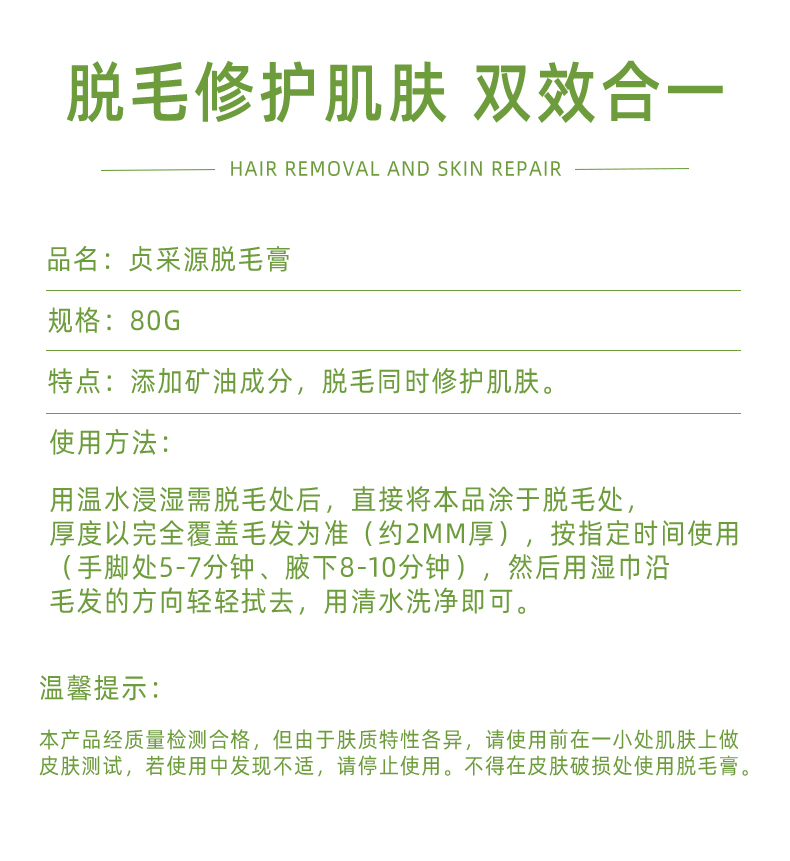 贞采源温和脱毛膏80g 腋毛腿毛温和去祛腋下学生安全非永久