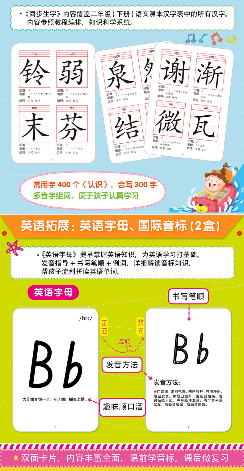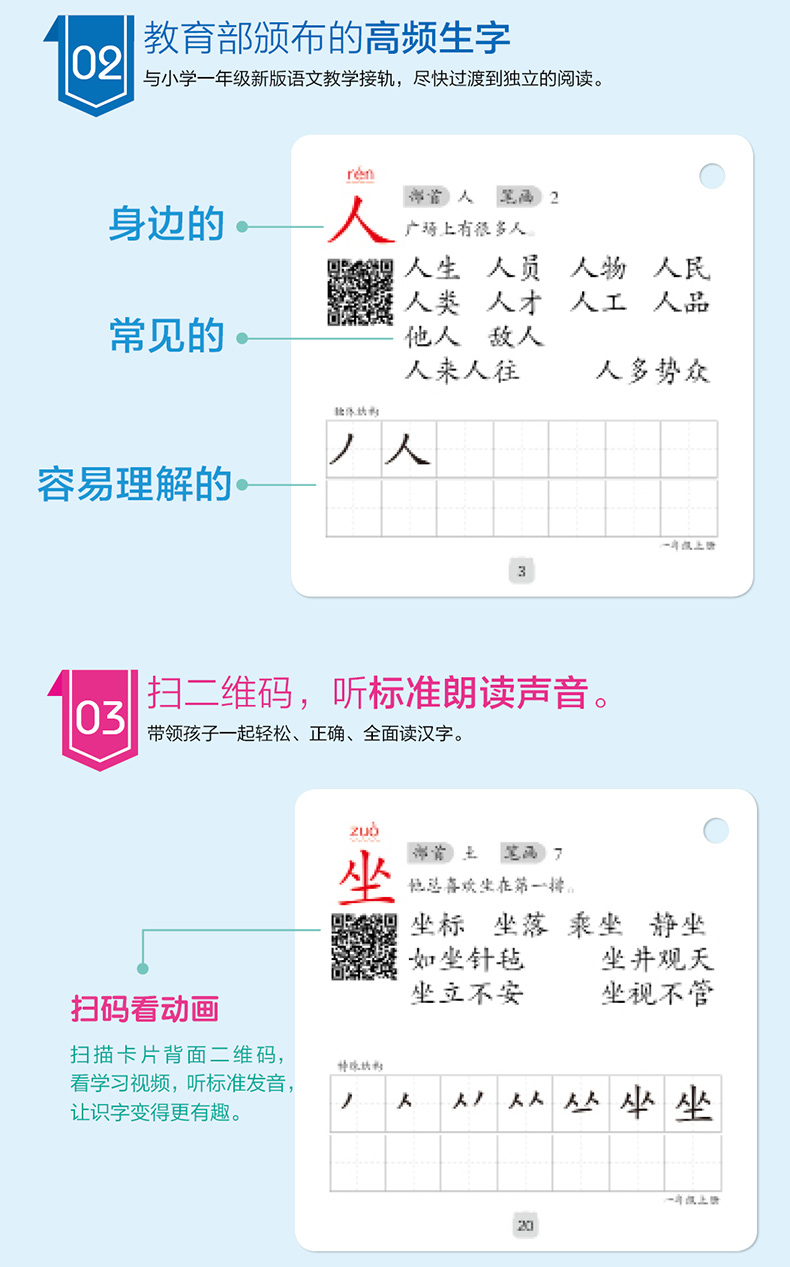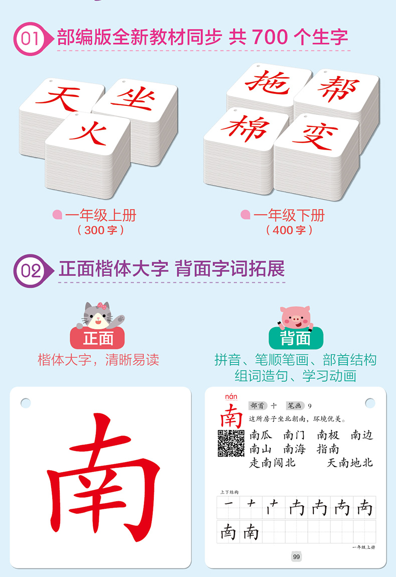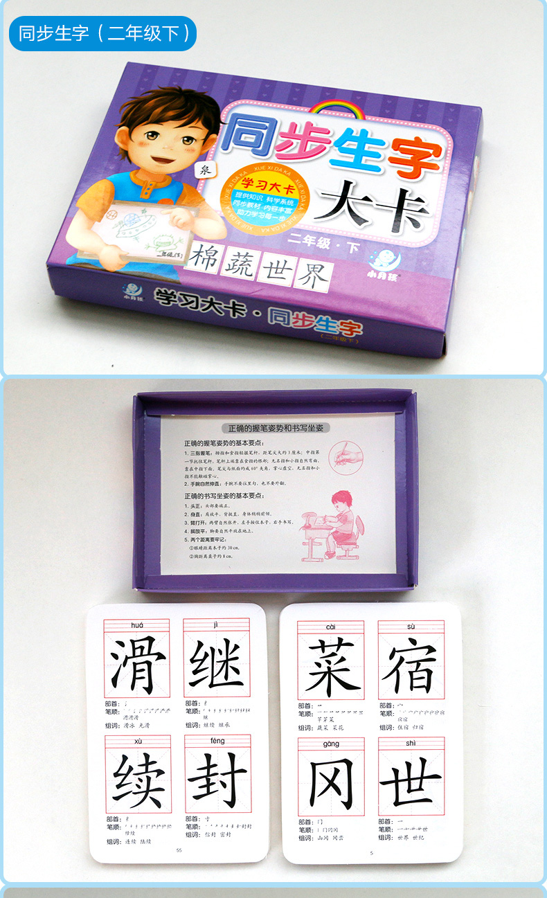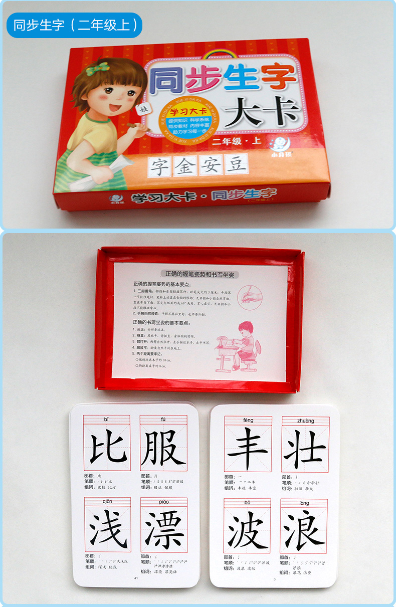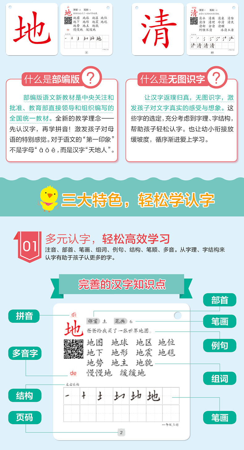儿童早教启蒙无图生字,语文认字卡,2018年新版,人教同步,一年级上下册无图识字。双面印制,大字注音,覆膜防