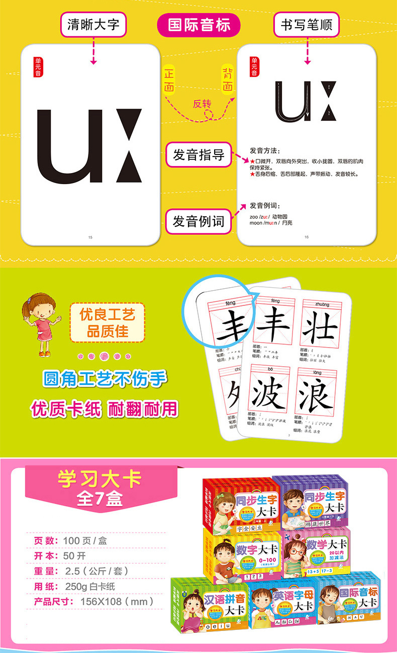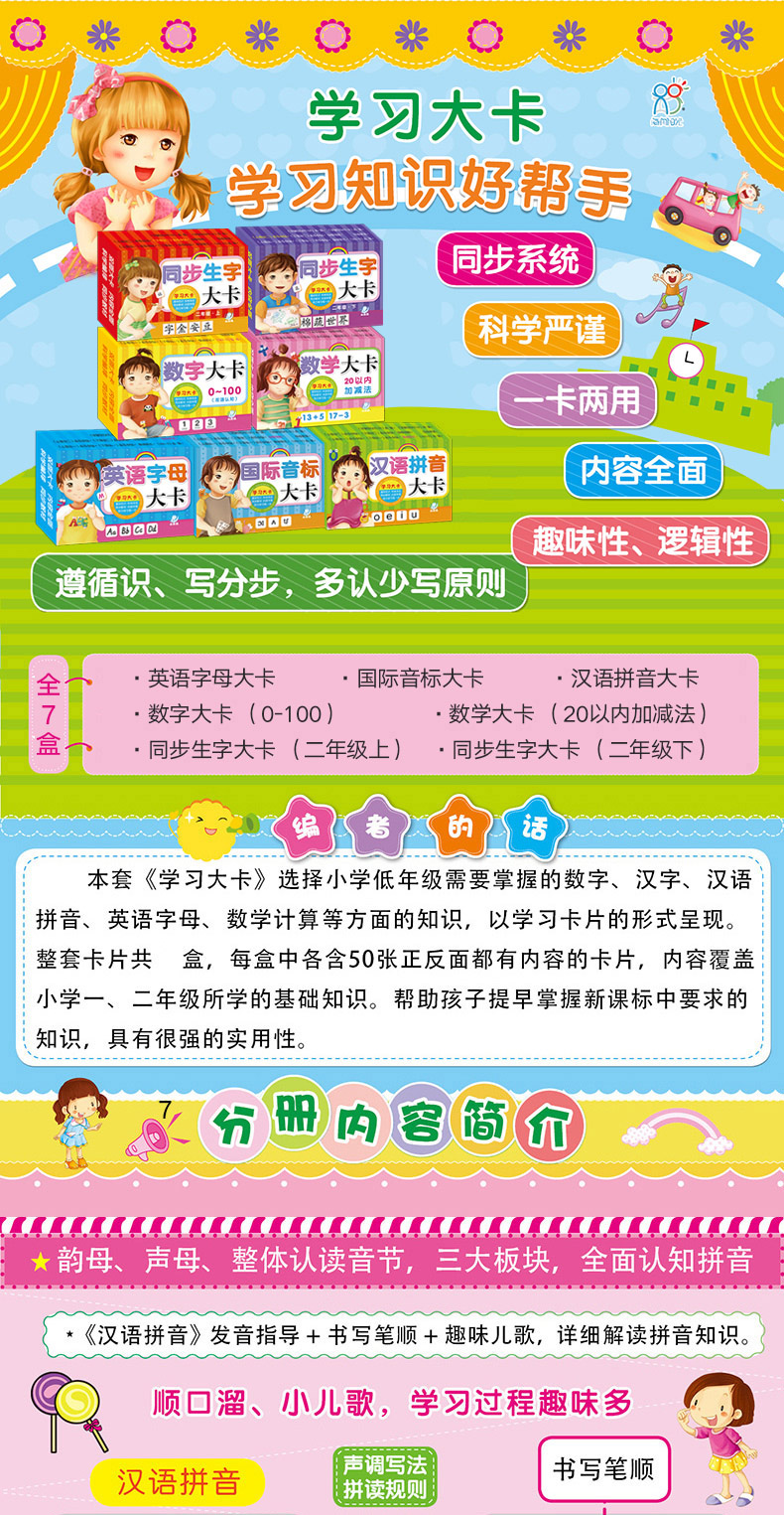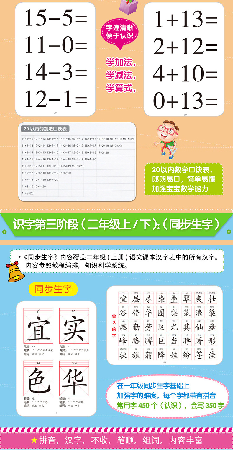 海润阳光 一年级无图识字卡 3-6岁宝宝认字卡片 拼音卡片早教启蒙