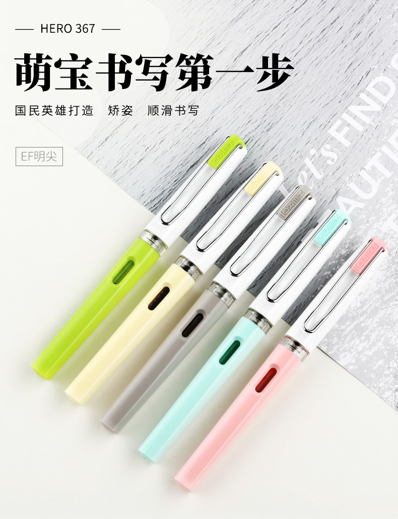 HERO/英雄钢笔学生用367明尖EF正姿练字用可替换墨囊钢笔官方正品男女孩小学生专用初学者定制logo刻字旗舰店