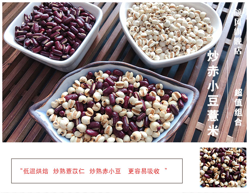 颜风炒熟的赤小豆薏米茶 小薏苡仁红豆祛除茶1000g包邮湿茶可磨粉