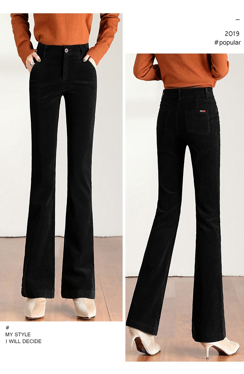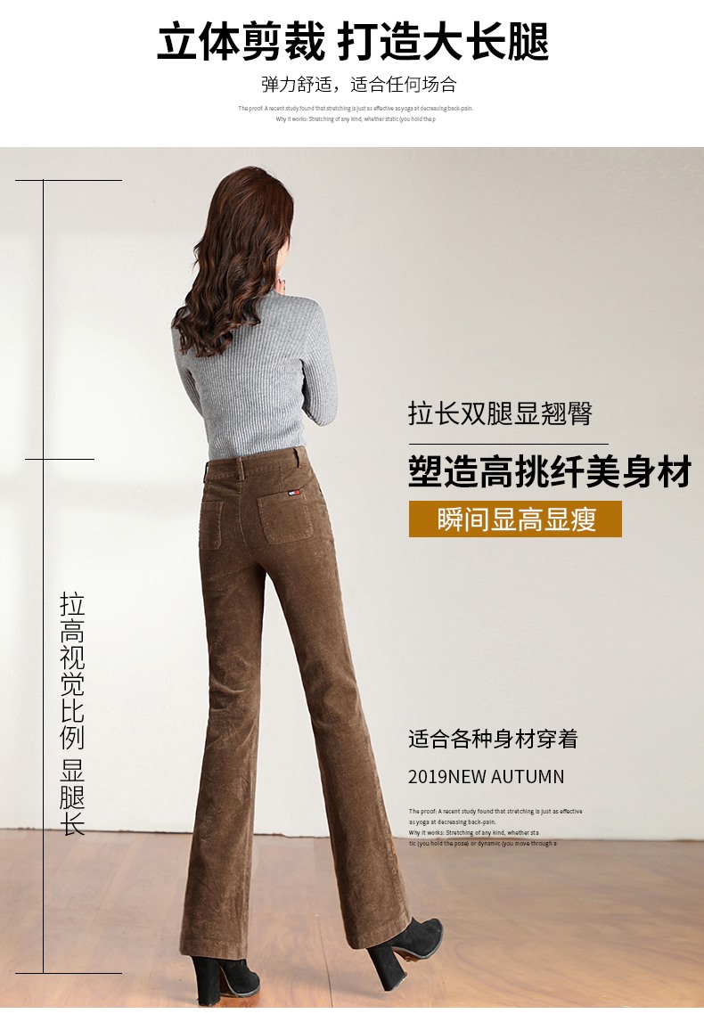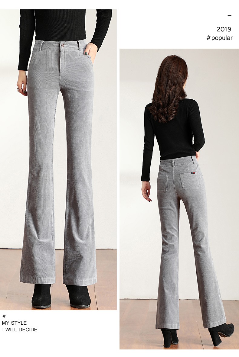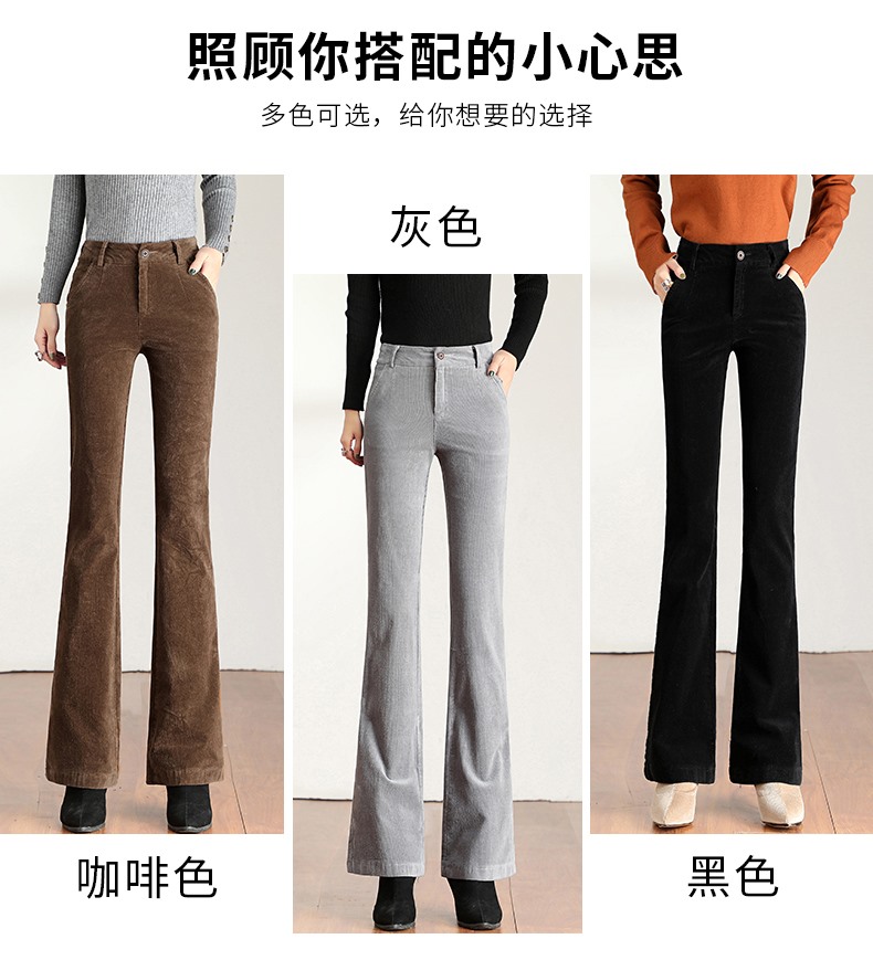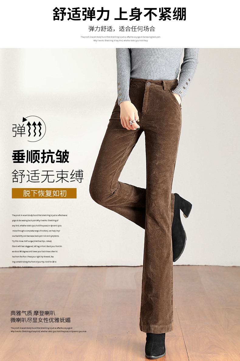 灯芯绒裤子女秋冬2019新款加绒阔腿条绒微喇叭裤加厚高腰休闲长裤