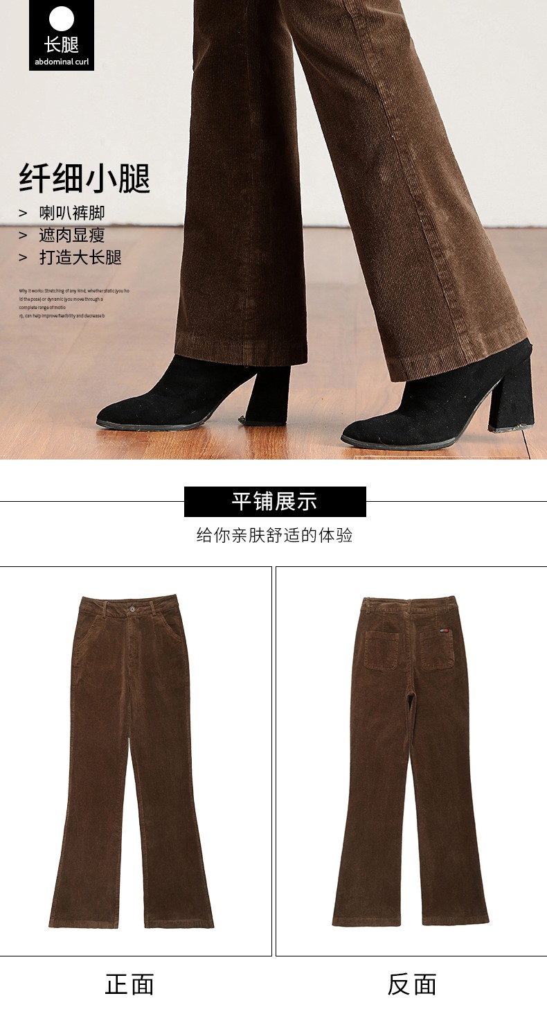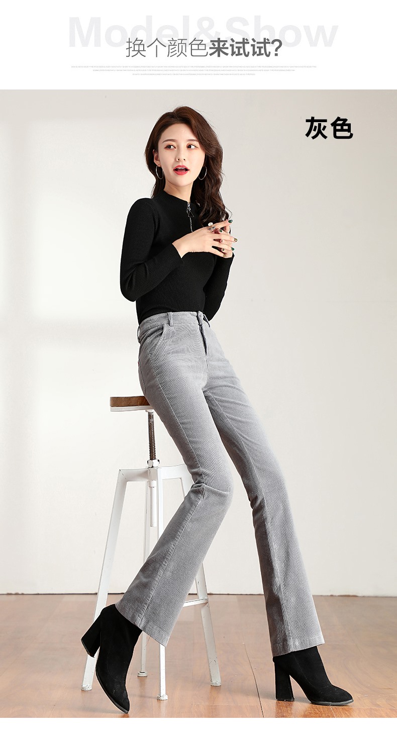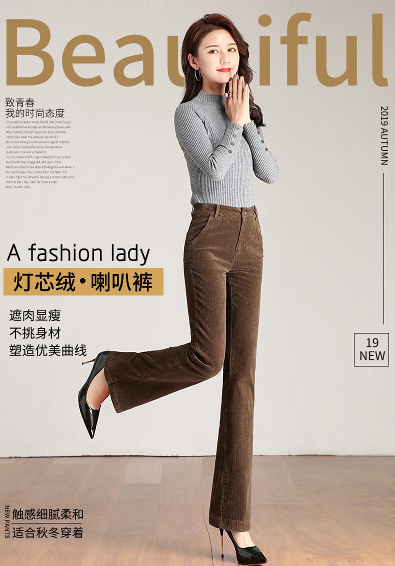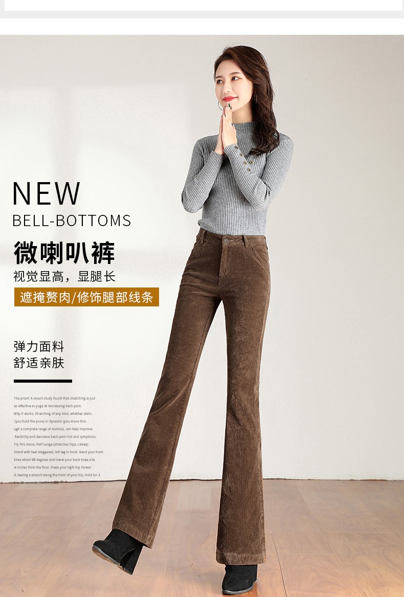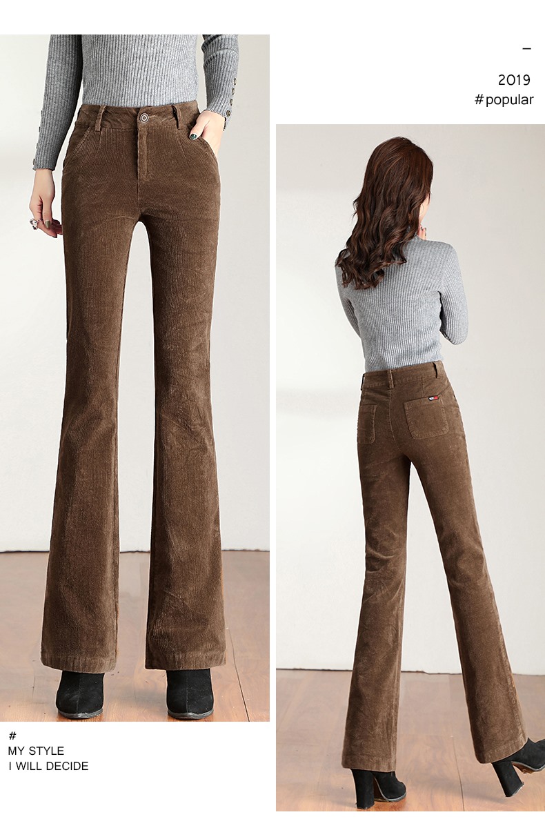 灯芯绒裤子女秋冬2019新款加绒阔腿条绒微喇叭裤加厚高腰休闲长裤