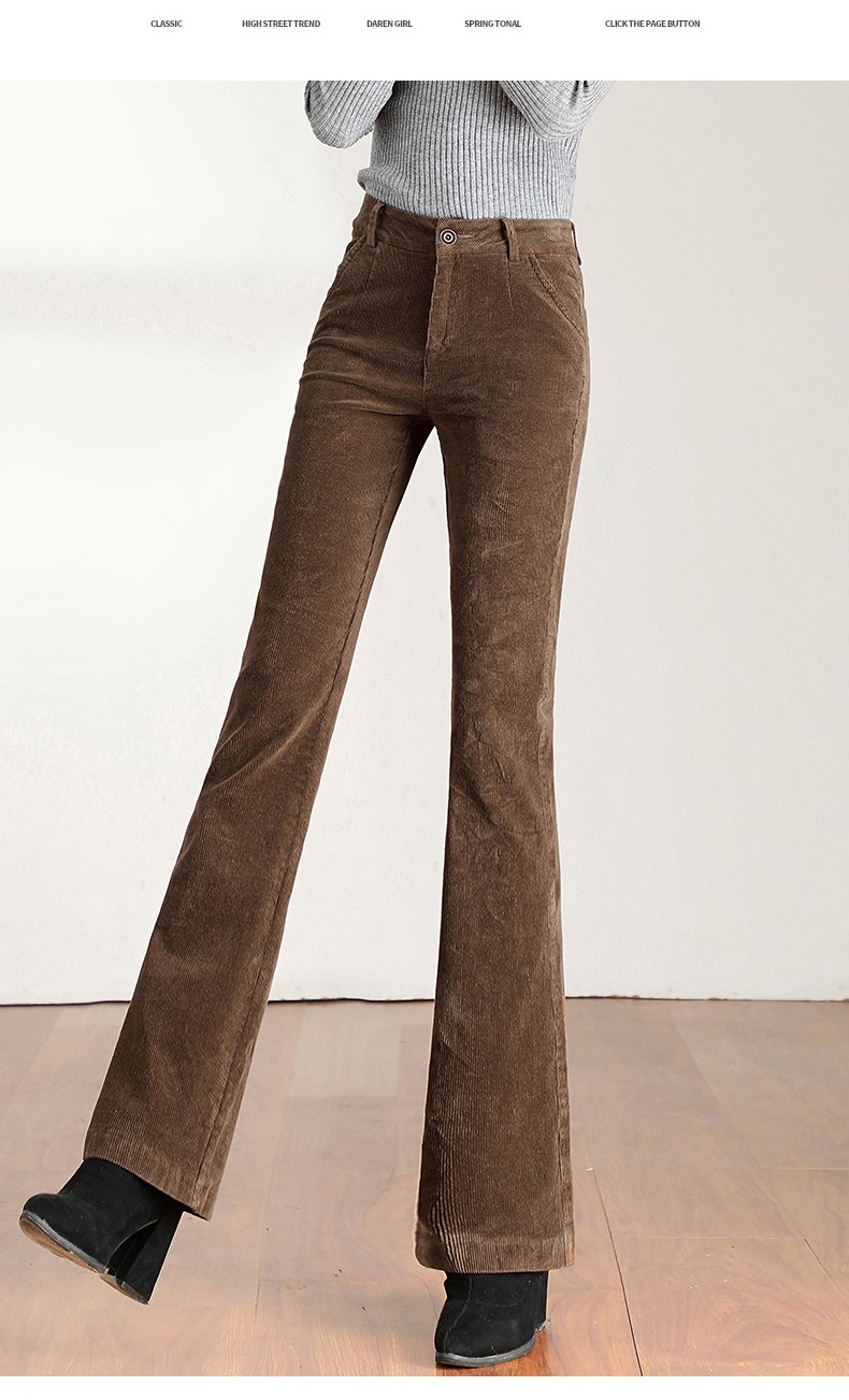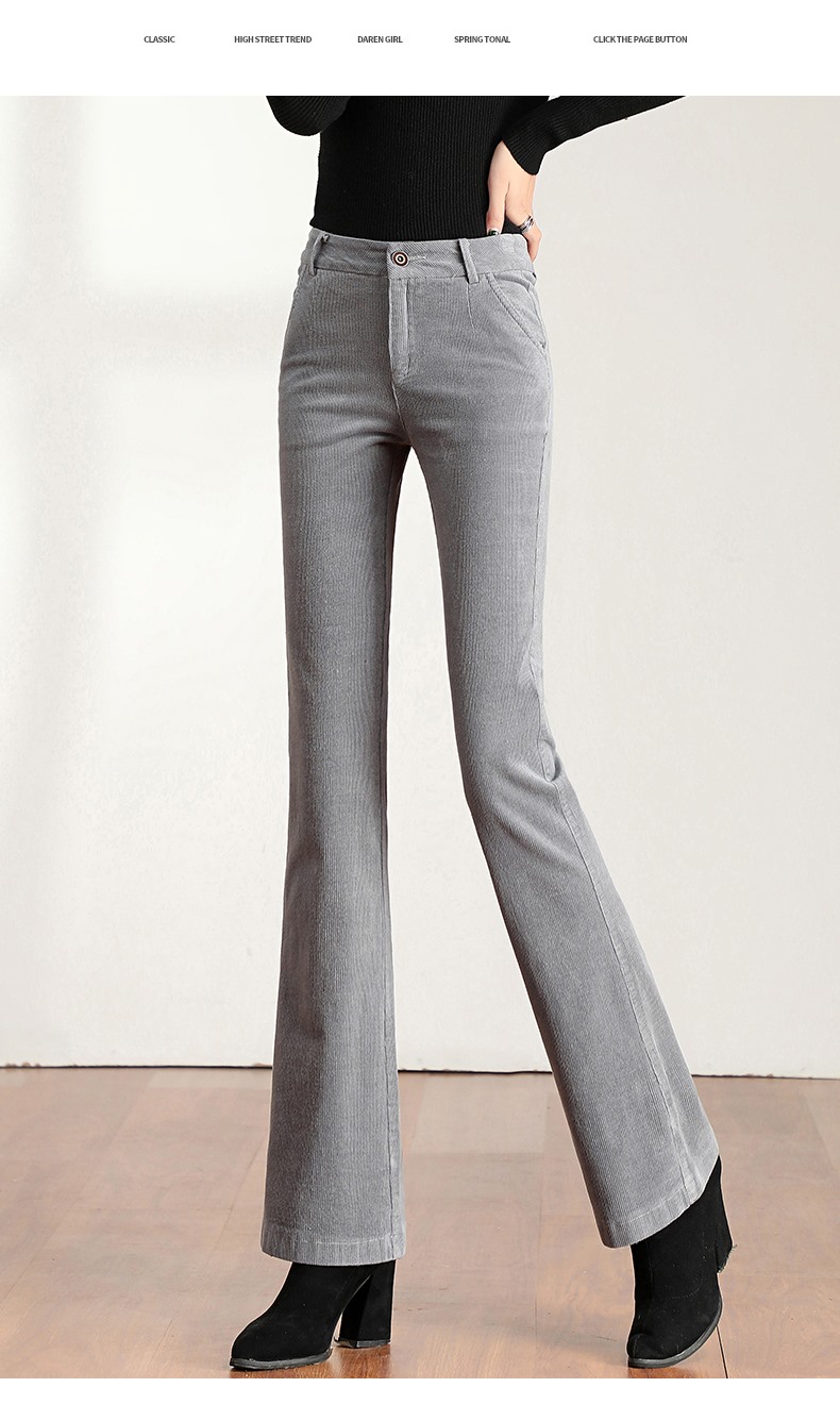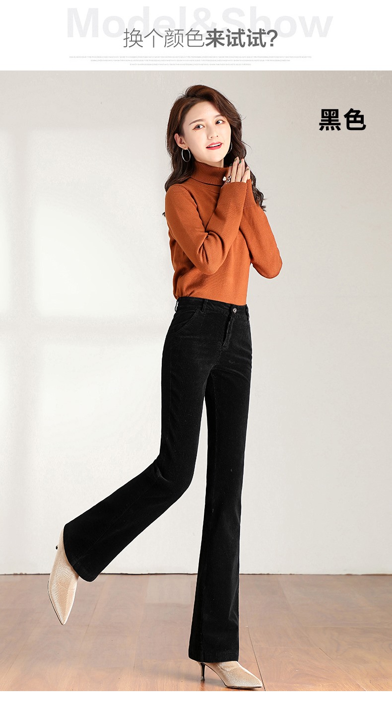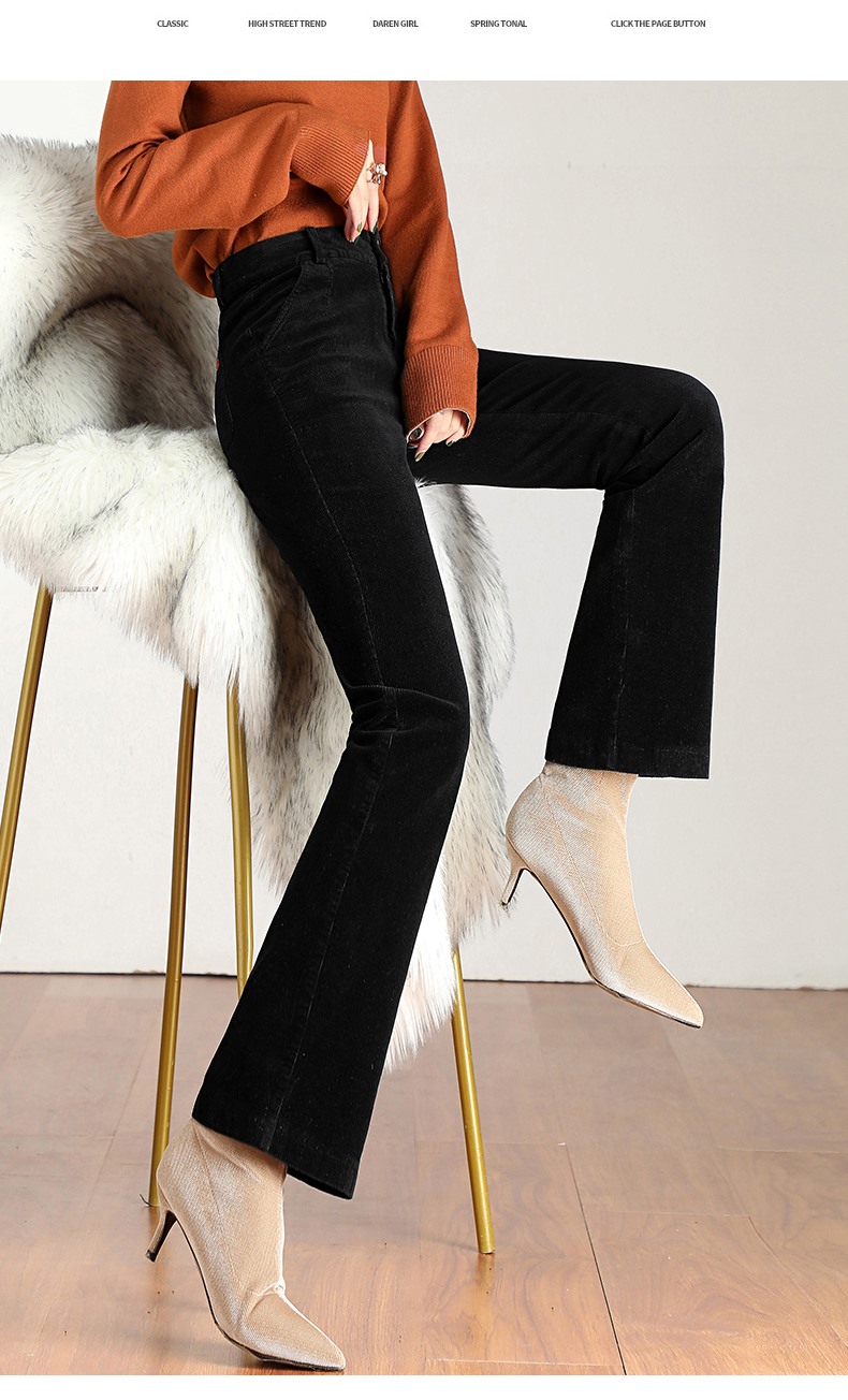 灯芯绒裤子女秋冬2019新款加绒阔腿条绒微喇叭裤加厚高腰休闲长裤