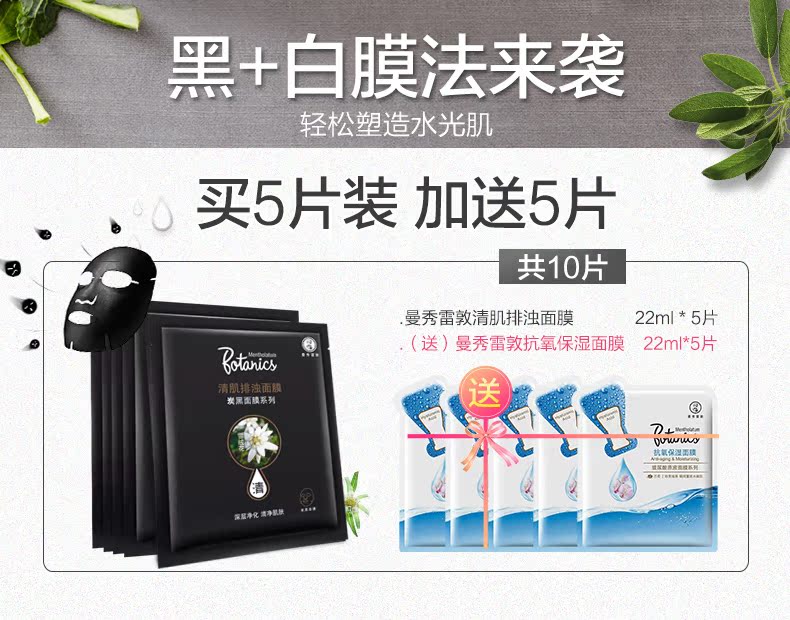 【买5片送5片】黑清肌水润面膜,排浊保湿,美白滋润抗氧化,柔嫩亮肤,轻松塑造水光肌,让你体验水嫩嫩的白。【赠运费险】