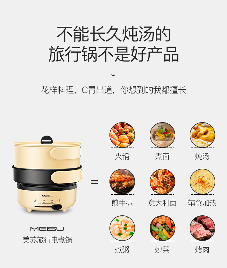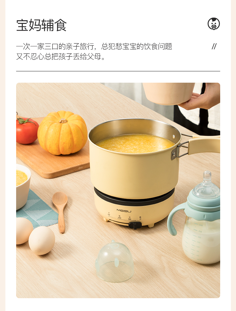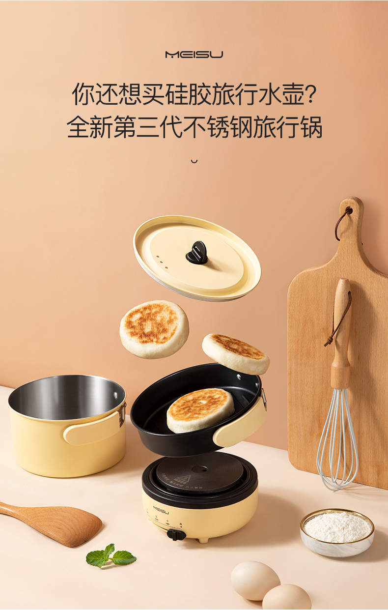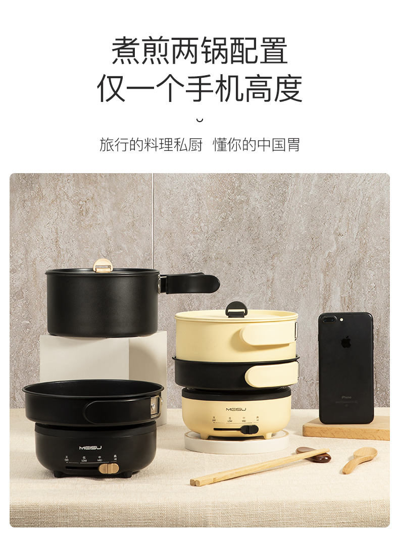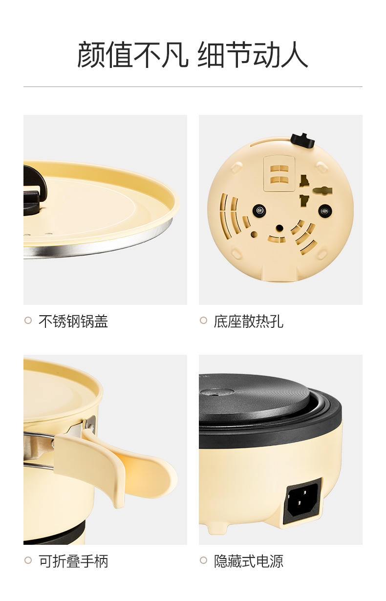 美苏旅行折叠锅便携式小型迷你火锅多功能宿舍电煮锅烤涮一体锅