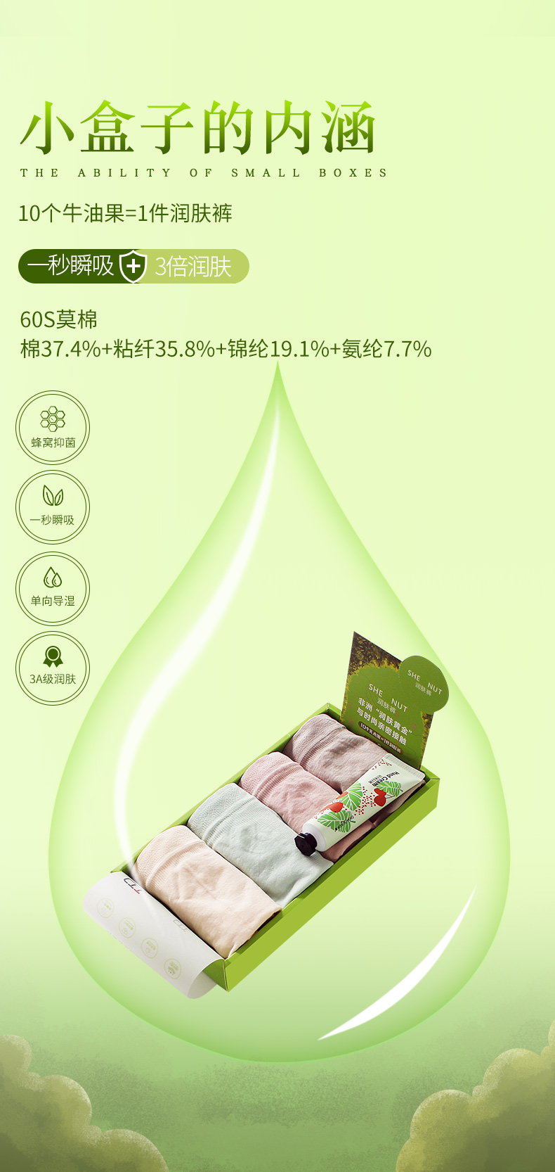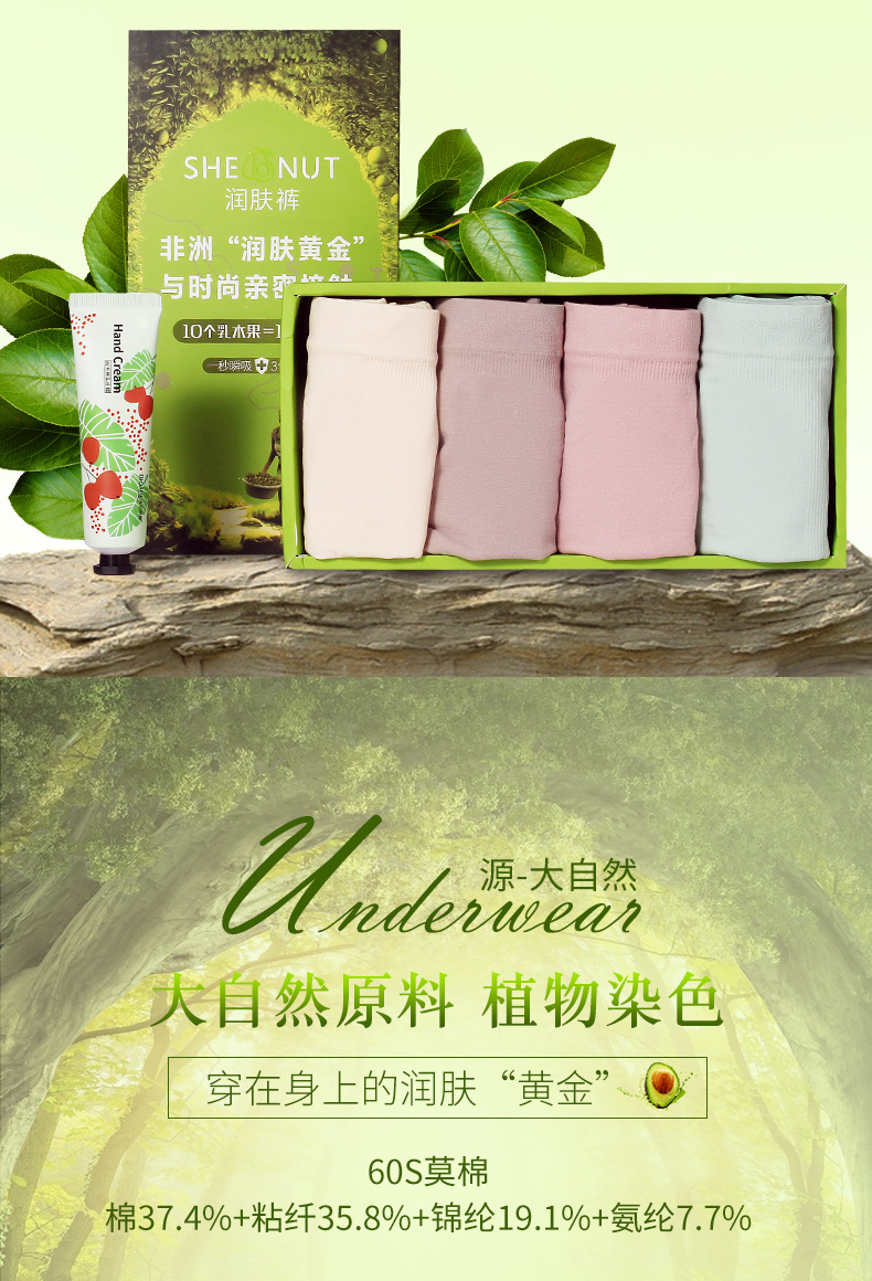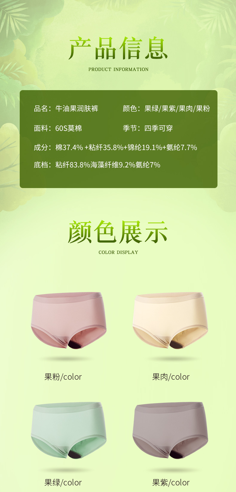 牛油果润肤中腰内裤女盒装提臀抗菌透气学生莫代尔高弹无痕三角裤