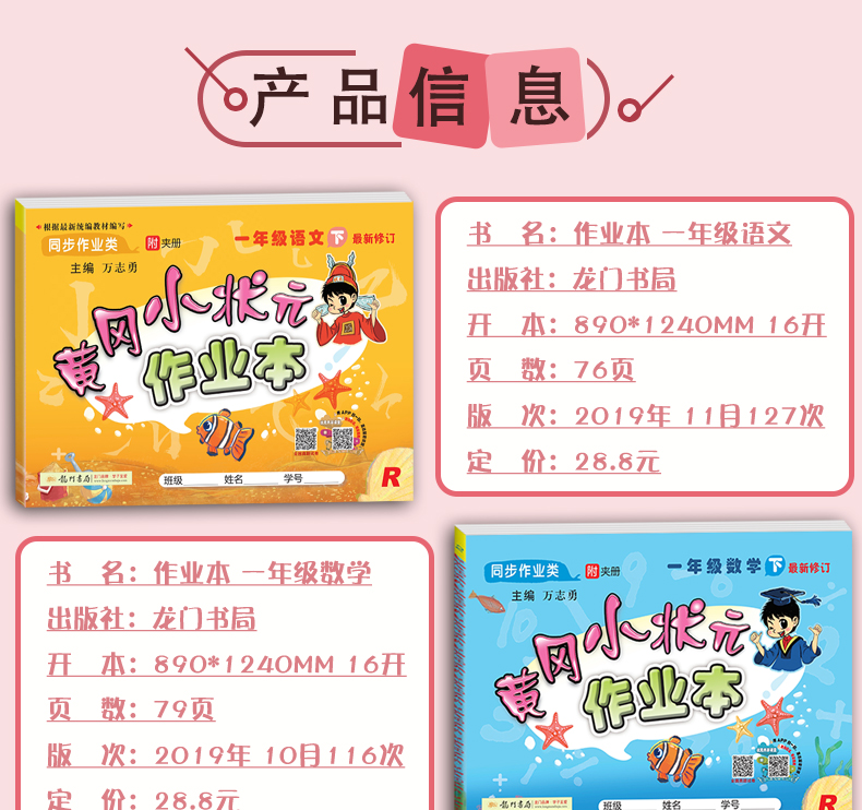 2019新版黄冈小状元作业本一年级下册语文数学全2本部编人教版RJ小学1年级下册同步练习教辅资料一课一练一年级黄冈小状元下册全套