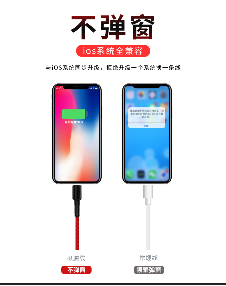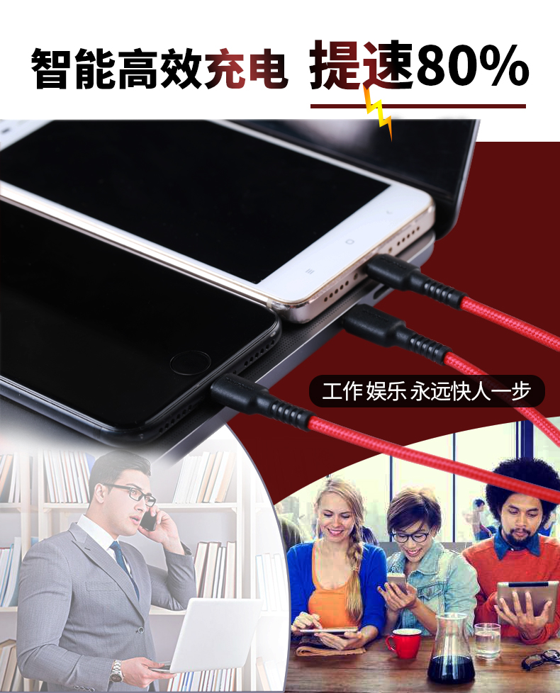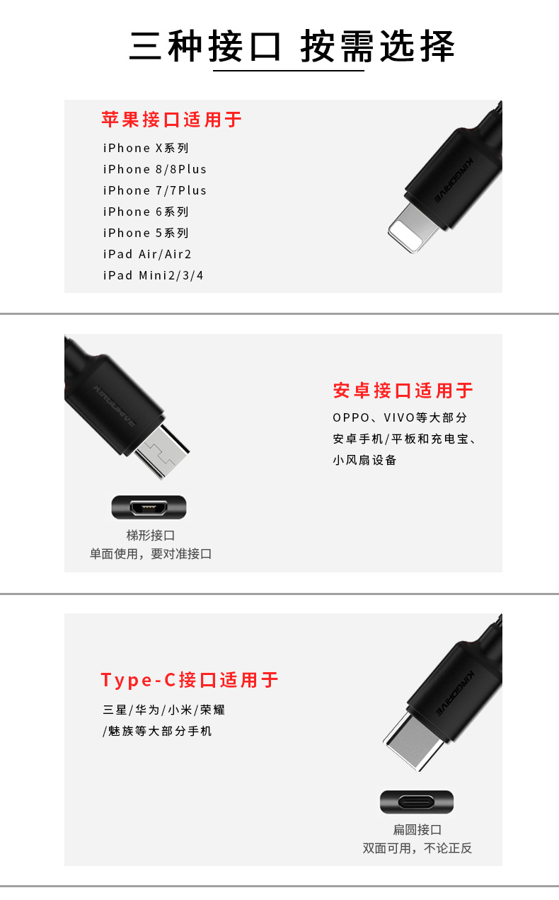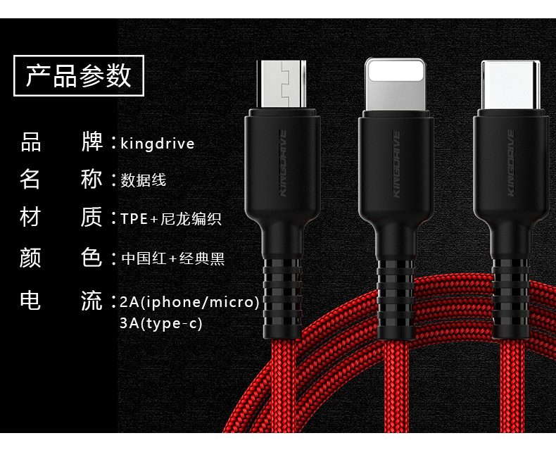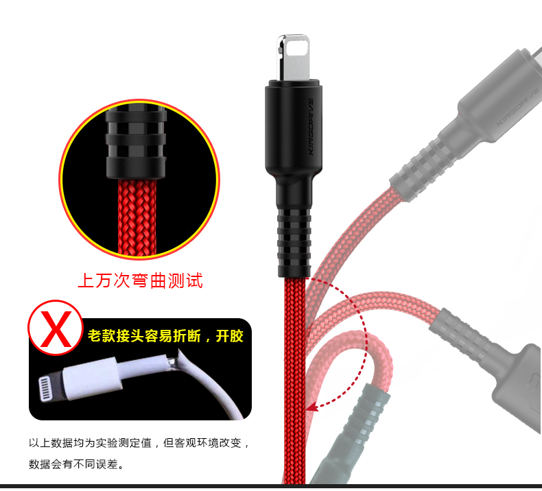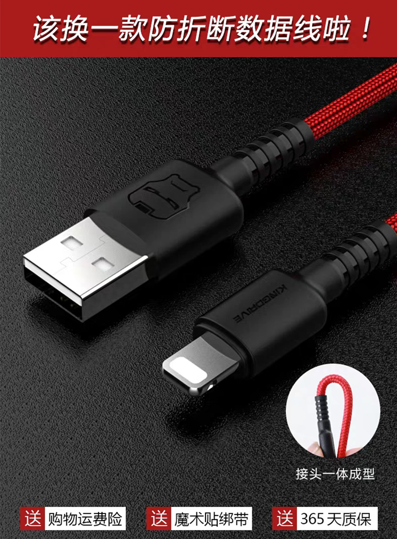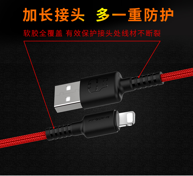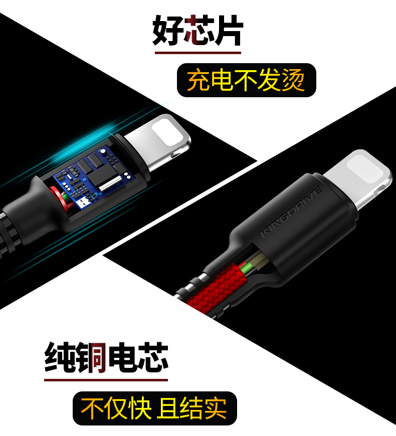 kingdrive正品华为数据线,iPhone6sp充电器线x手机,8plus苹果7p安卓oppor9s快充闪充typec小米vivo通用单头,芯片升级,智能提速,尼龙编织线材,坚韧耐用