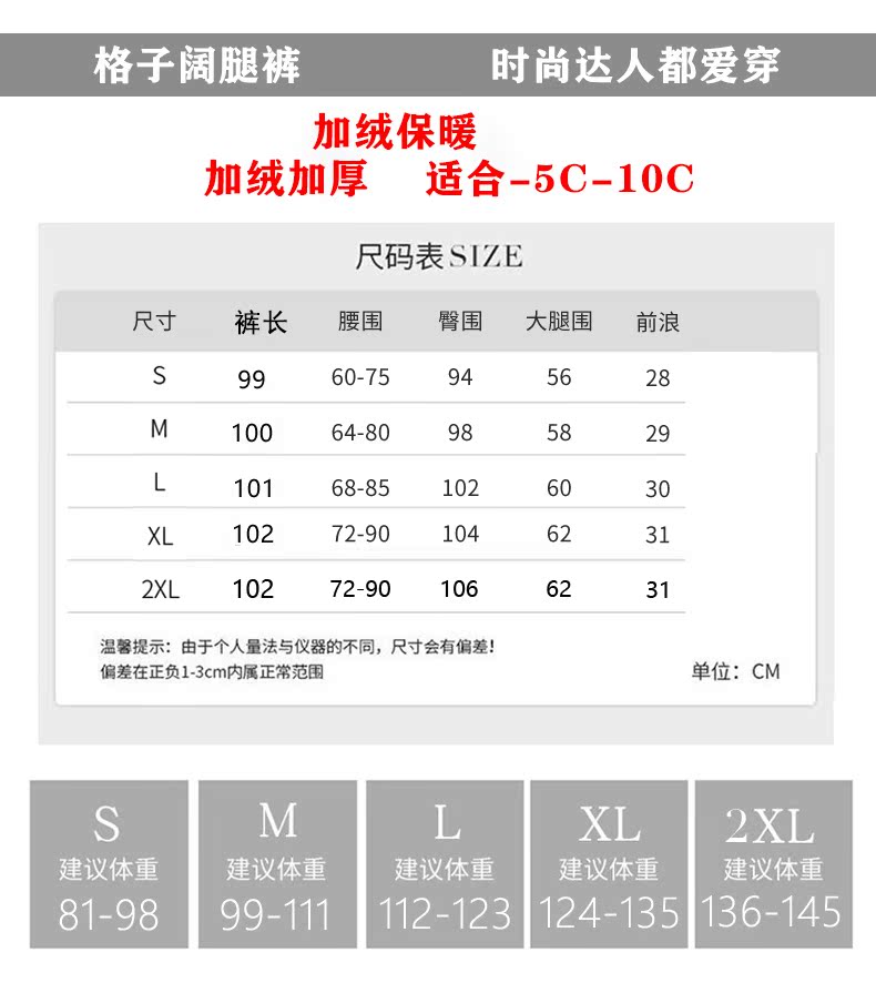 格子阔腿裤,甄选优质加厚毛呢面料,舒适不起球,垂直显瘦,高腰收腹,时尚有型,更显腿长,加绒加厚!~赠运费险