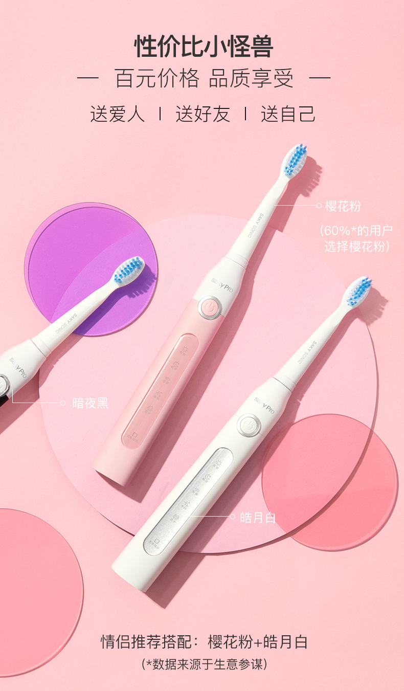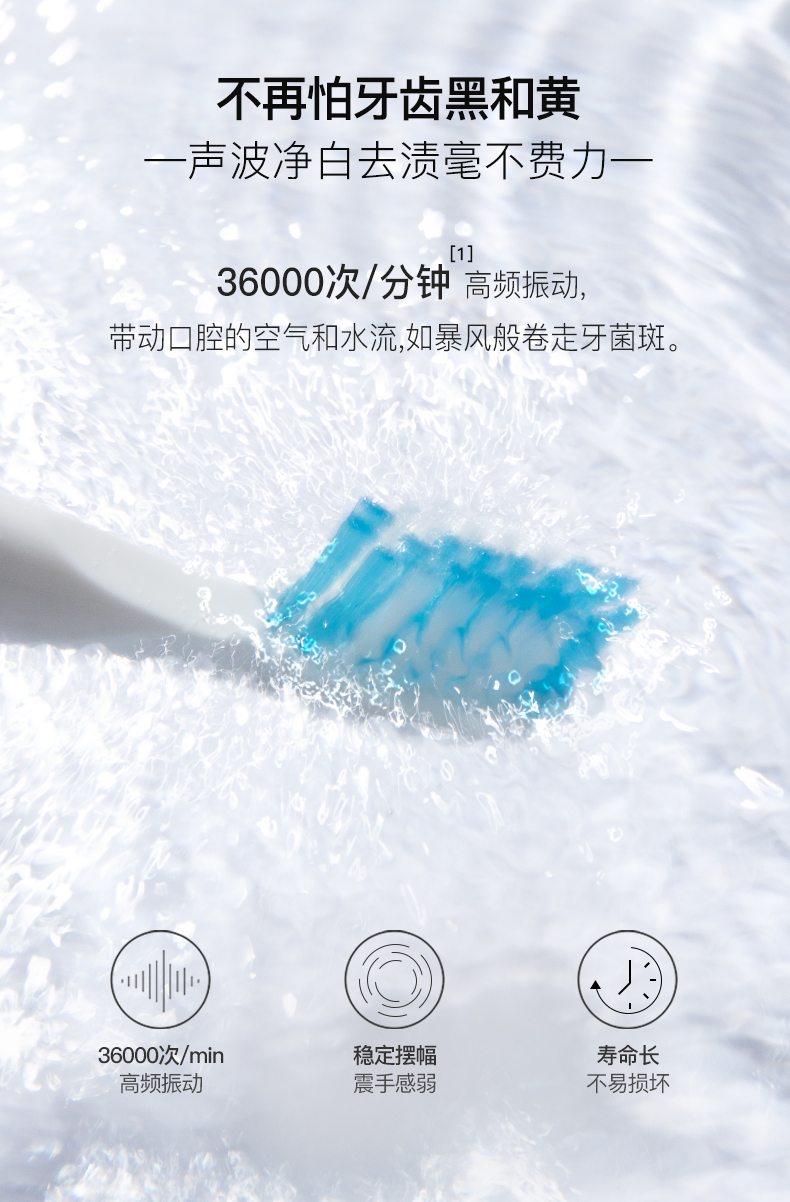 火爆小红书!2万多好评推荐!智能模式+早安净白+晚安净化,更有敏感模式,呵护牙龈不适者!30秒换区提醒+2分钟智能定时,高速声波震动,清洁的同时更能呵护牙龈,3周无忧续航,旅行更方便【赠运费险】