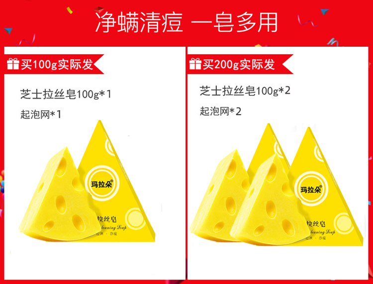 玛拉朵芝士拉丝洁面皂除螨海盐洗脸面部去螨虫男女网红手工香皂