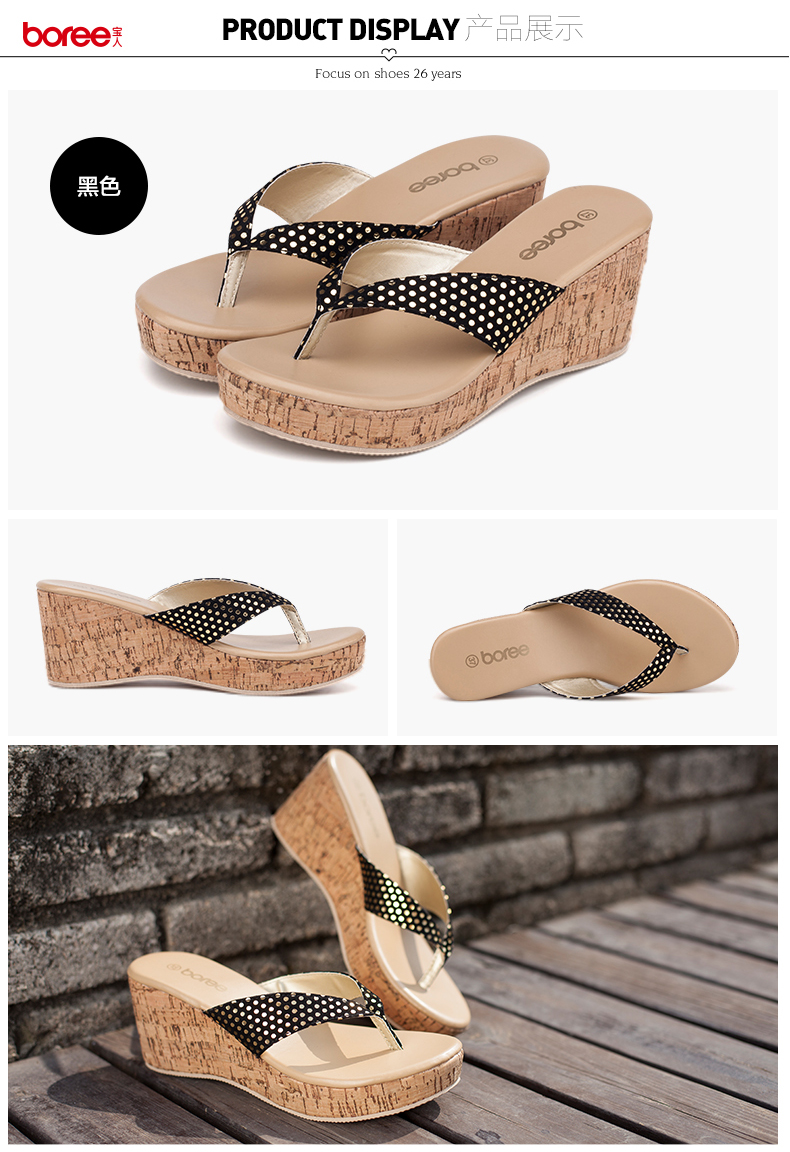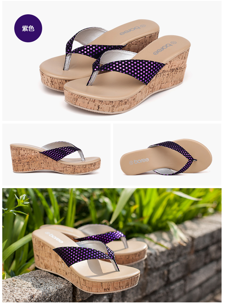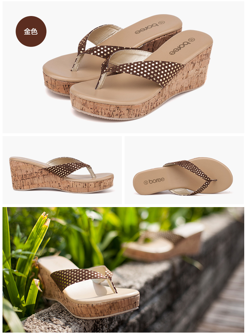 宝人拖鞋2019新款夏季女凉拖鞋坡跟高跟松糕防水台厚底人字拖