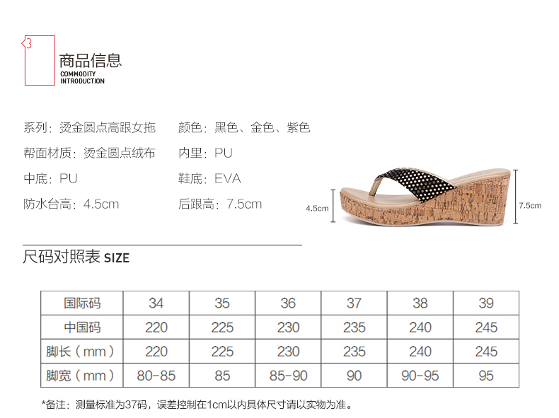 宝人拖鞋新款女凉拖鞋,坡跟高跟松糕防水台设计,厚底人字拖,简约设计,懒人拖【赠运费险】