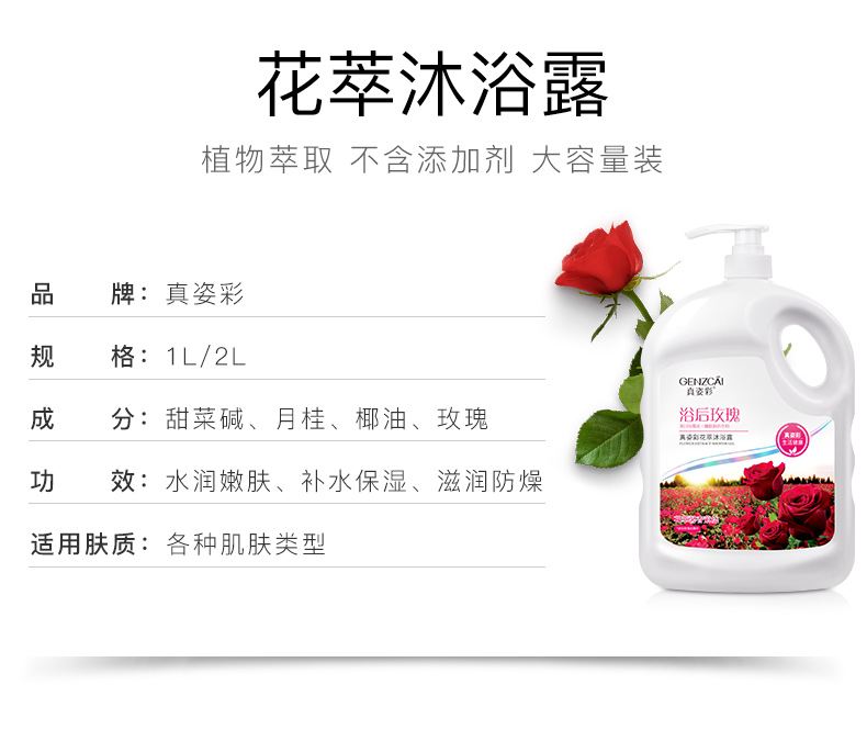 真姿彩包邮 玫瑰沐浴露男女2000ml沐浴露嫩滑滋润补水保湿家庭装