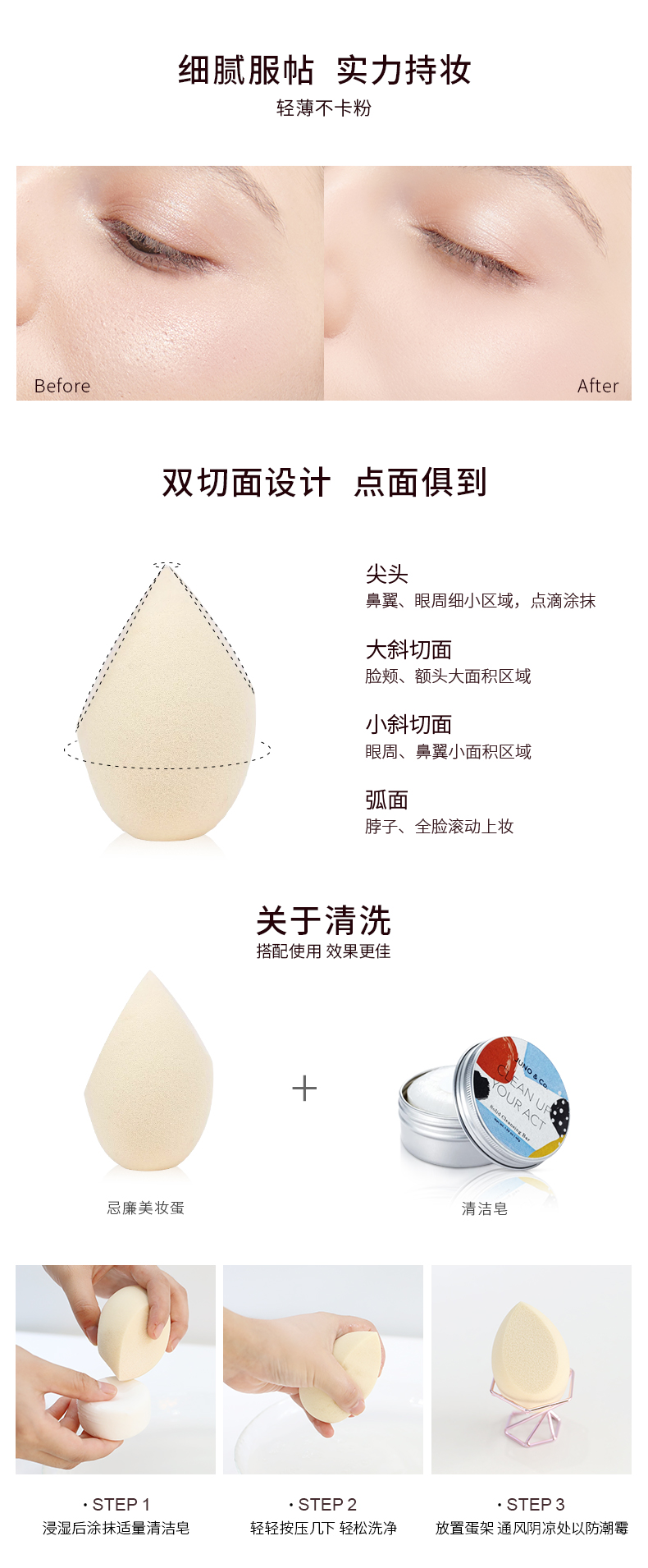 JUNO&Co.美国海绵粉扑美妆蛋不吃粉化妆斜切柔软化妆蛋彩妆蛋正品