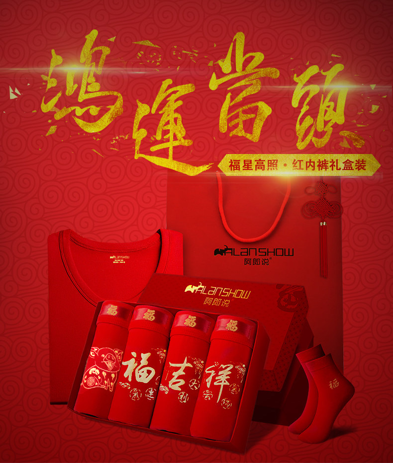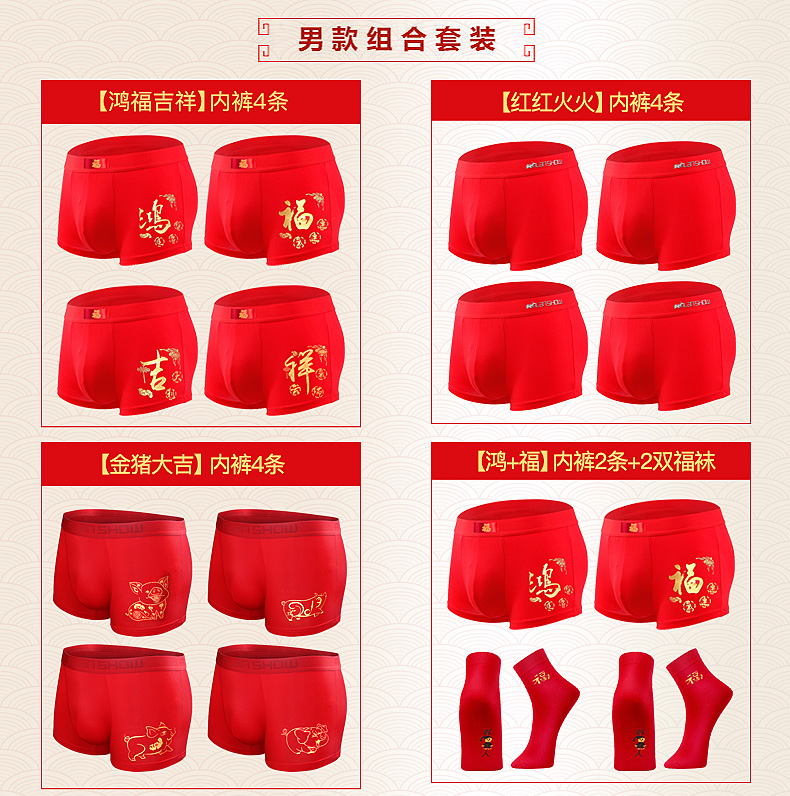 【阿郎说旗舰店】精选优质亲肤莫代尔纯棉面料,吉祥如意,鸿运当头,辞旧迎新,一转眼年已至尾~鼠年将来临,红色内裤备起来!让“喜”多一点!让你新的一年顺顺当当!不要错过,错过必涨价~