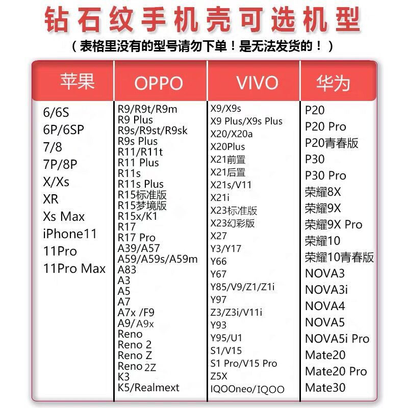 (华为*OPPO*苹果*VIVO钻石纹手机壳)高端精致设计,钻石闪闪发光,钻石炫酷款式齐全,全系列手机壳,全包防复古创意,全方位保护,防滑防摔,里面有超多金粉和金箔,整个手机壳都在闪亮,小仙女必备哦~