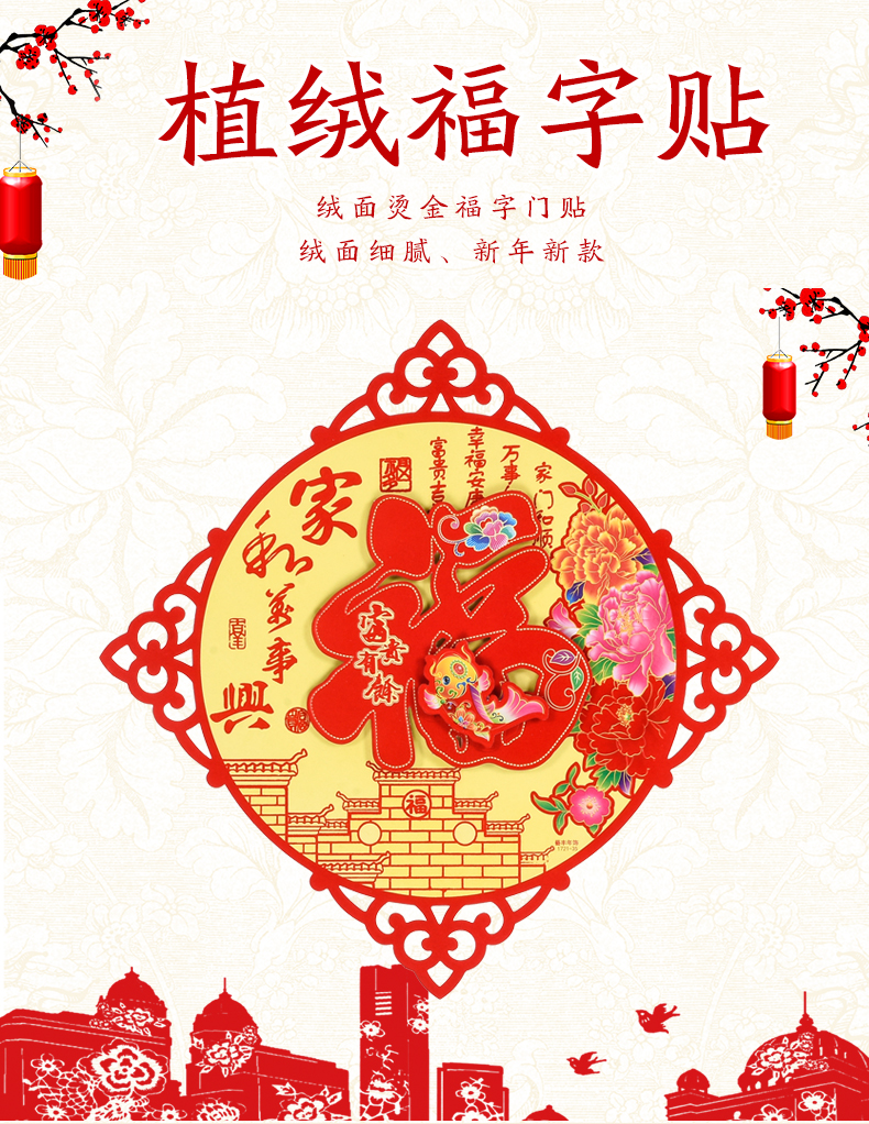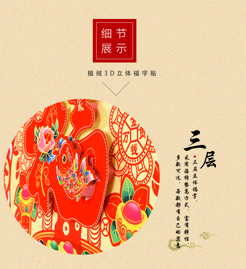 2020新年春节喜庆立体植绒福字贴墙贴门贴纸创意乔迁装饰用品窗花