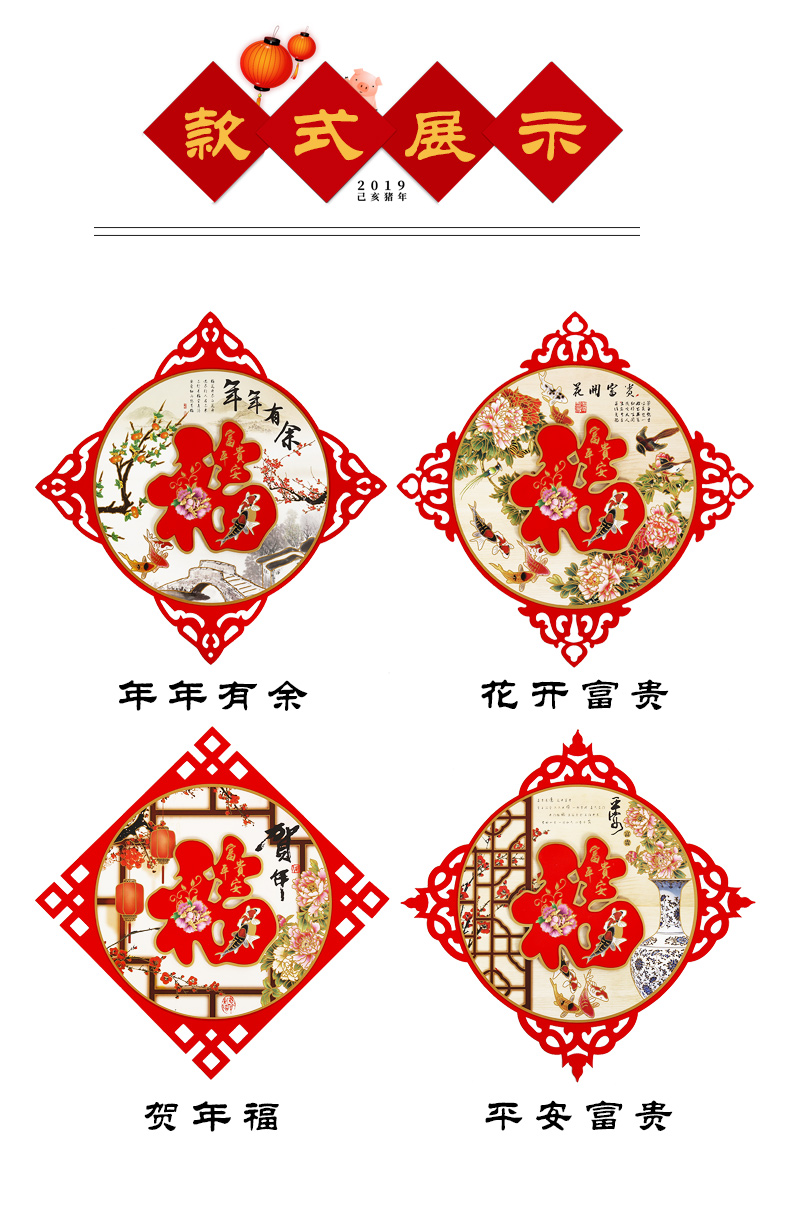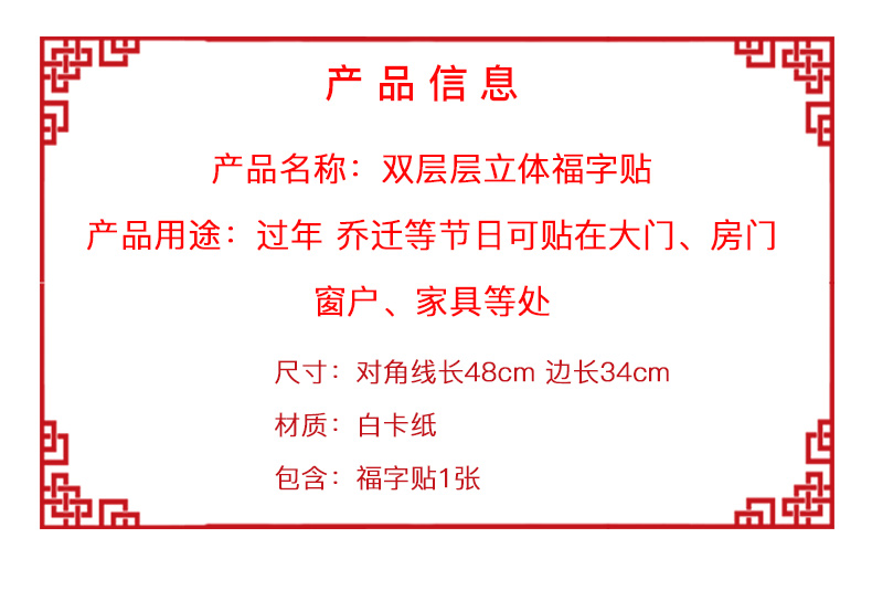 2020鼠年新年立体福字窗花,色彩艳丽,不易褪色,耐撕扯,防水防潮,彩金工艺,精致美观,新春必备,便宜好货屯起来!!【赠运费险】
