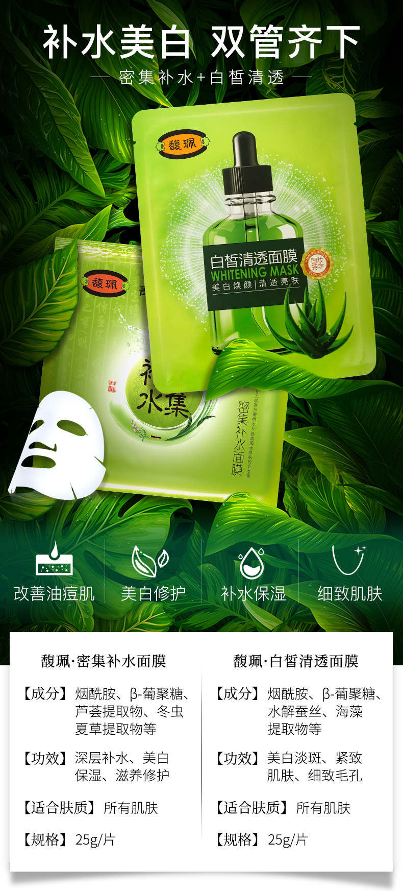 【到手20片】美白+补水保湿,纯植物萃取,密集补水,一片足足20ML精华液,让肌肤喝饱水,提亮肤色,美白淡斑,滋养修护,还您水嫩美肌。【赠运费险】