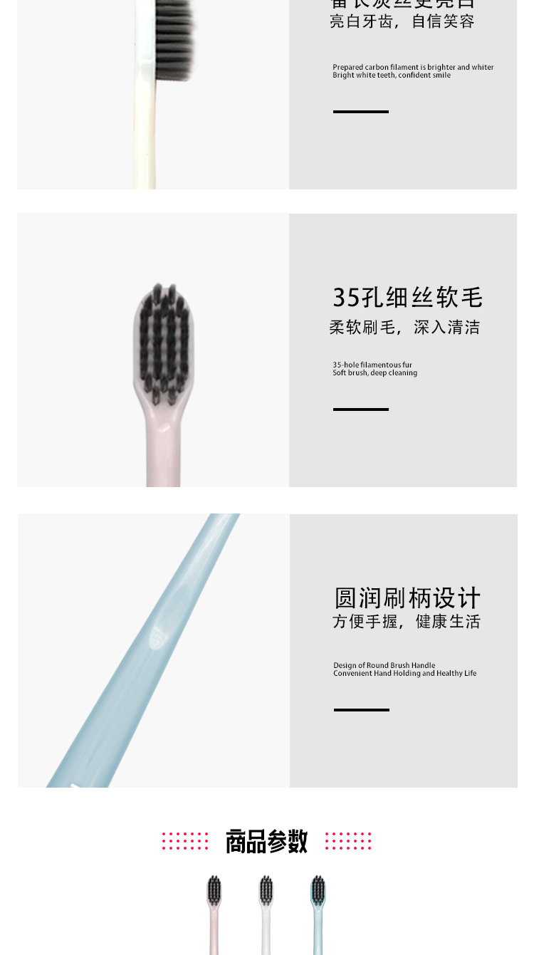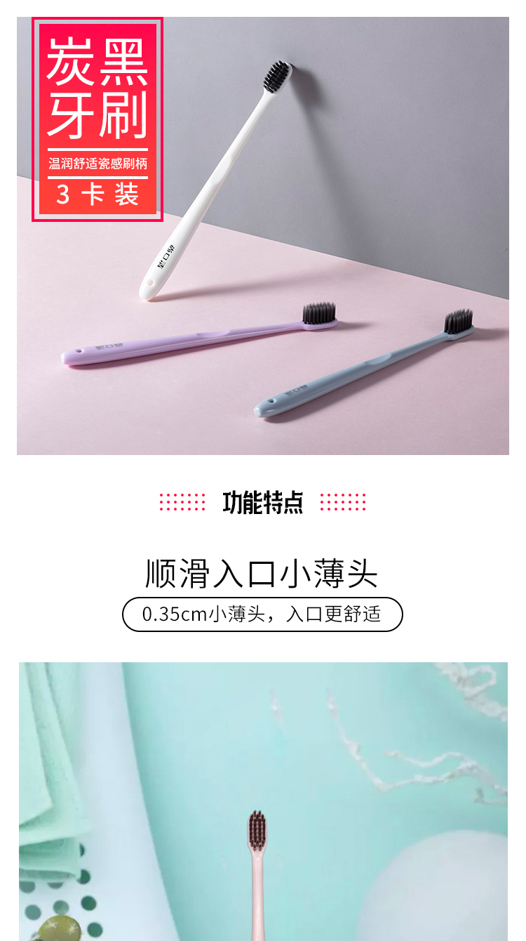 【超值3支独立装】高档竹炭软毛牙刷,品质软毛细刷,全方位口腔护理,有效清洁牙垢,不伤牙龈,清新口气,深度清洁,减少口腔损伤,温柔对待每颗牙齿。