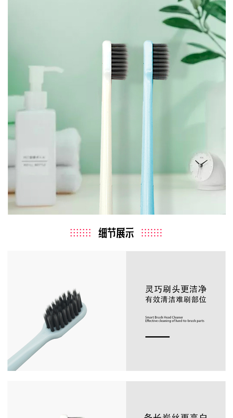 尚口清牙刷软毛小头可爱女生女士竹炭备长炭细毛家庭装家用包邮