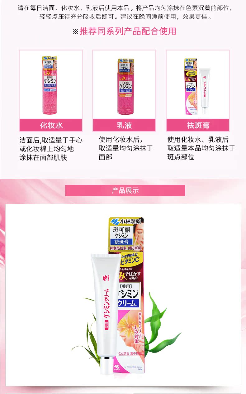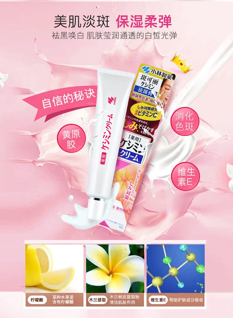 小林制药日本美白保湿祛斑膏淡斑雀斑晒斑修复淡化痘印滋润肌肤霜