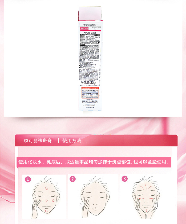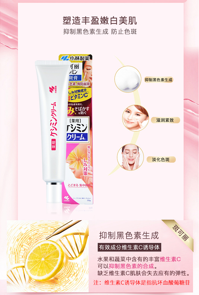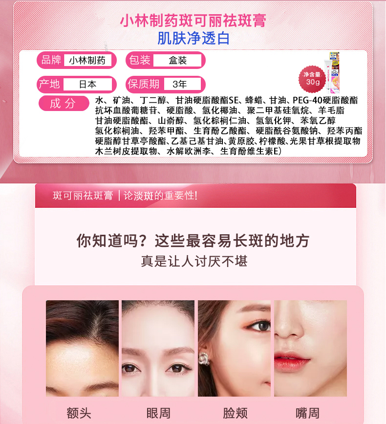 【李佳琪推荐,小红书爆款】小林制药斑可丽祛斑,膏肌肤净透白,滋润紧致,淡化色斑,保湿柔弹,改善痘印,晒后修复,抑制黑色素生成