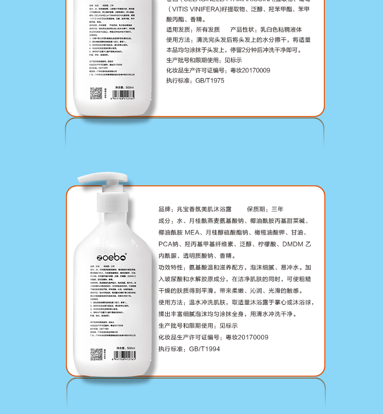 ZOEBO/兆宝氨基酸滋养洗发水露去屑控油染烫损伤修护洗头膏男女士