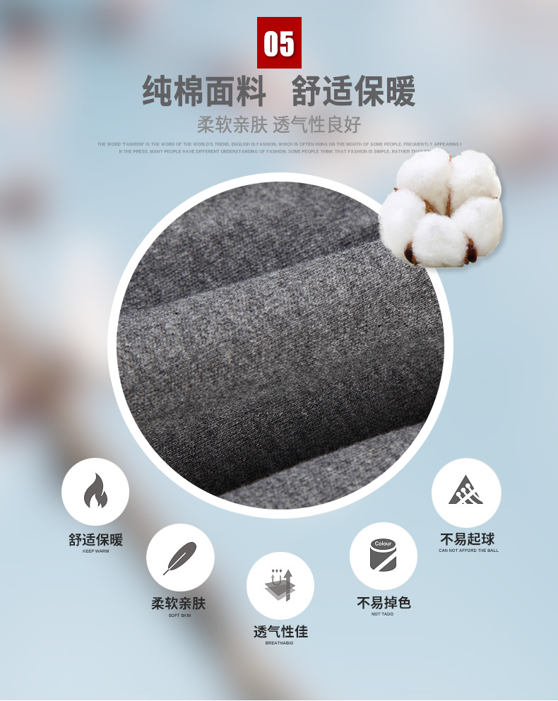纯棉面料,柔软亲肤,舒适贴身保暖,弹性十足,久穿不易变形,立体设计,修身舒适,做工非常精细!享受健康生活!