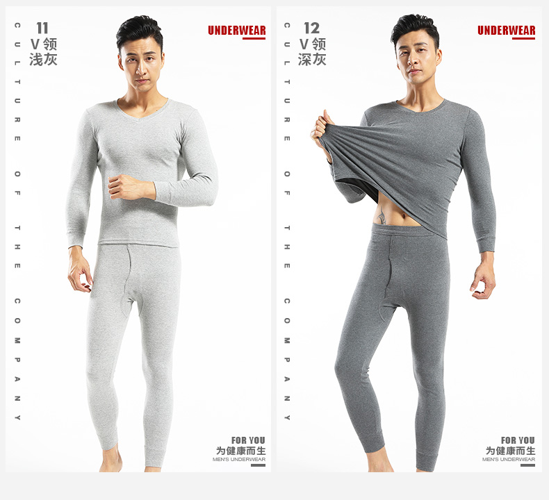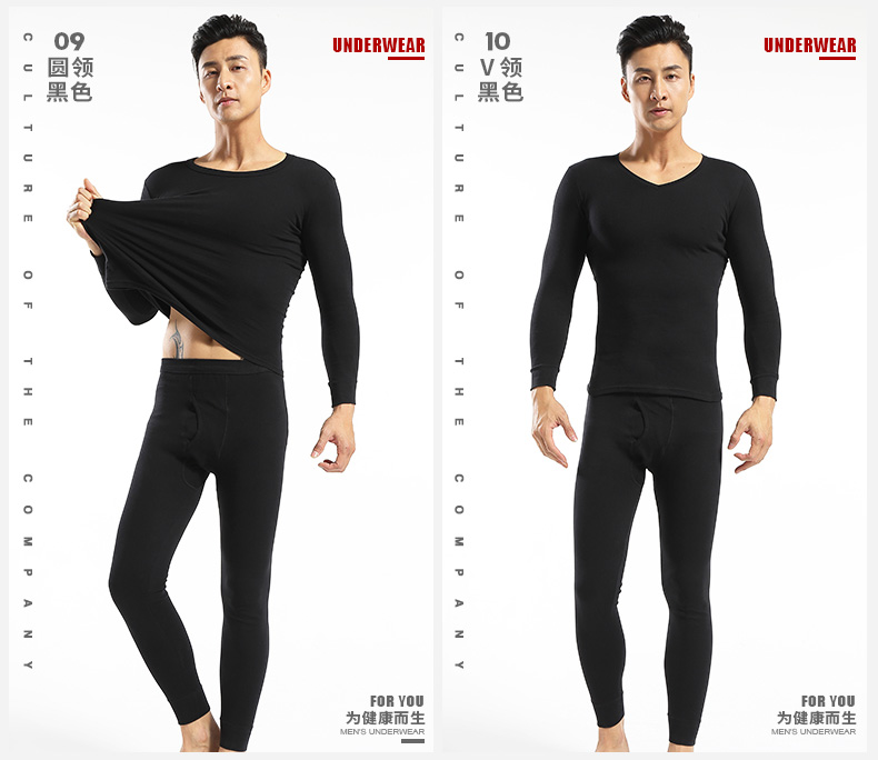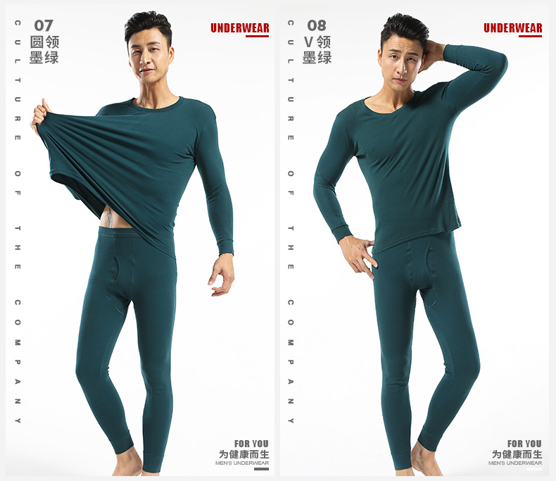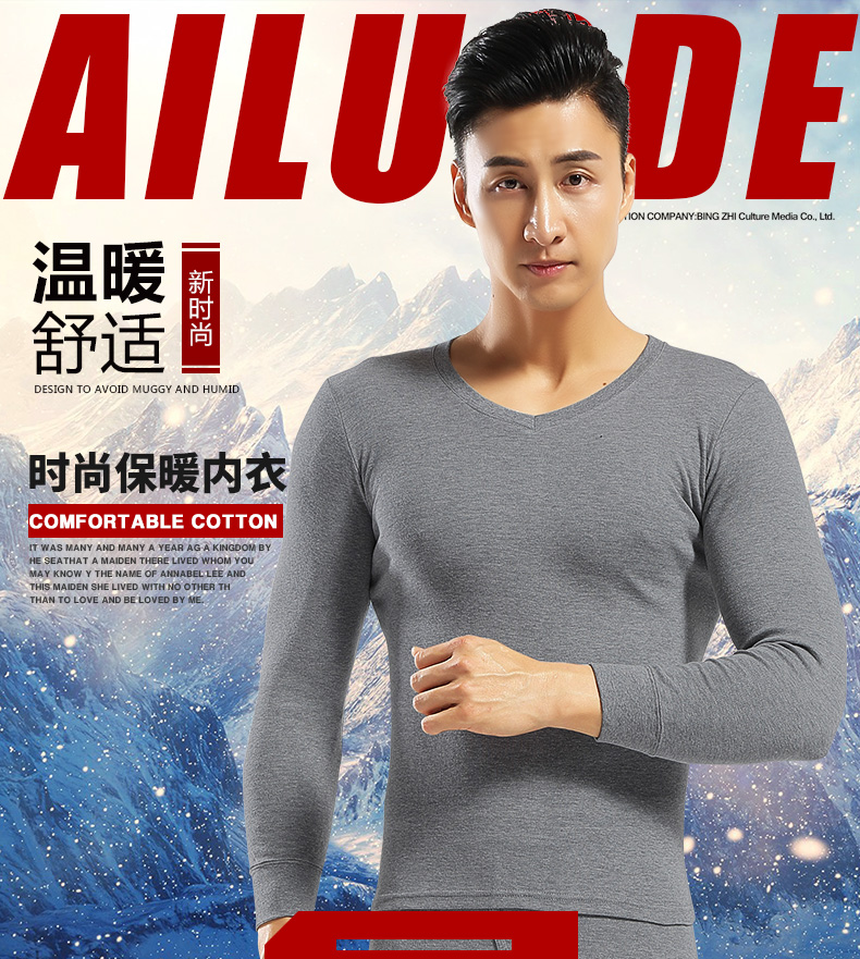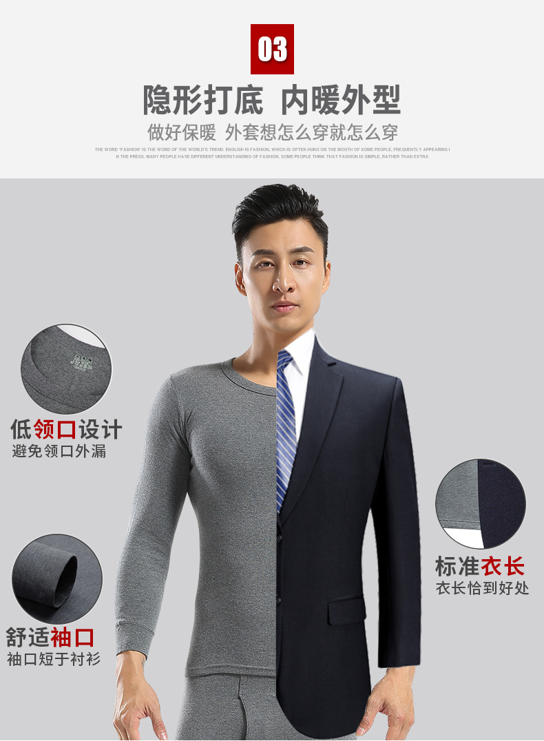 秋冬男士保暖套装内衣纯棉秋衣秋裤青年圆领棉毛衫套装加厚打底衫