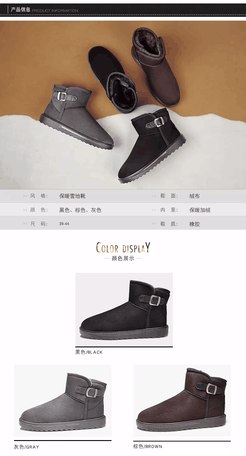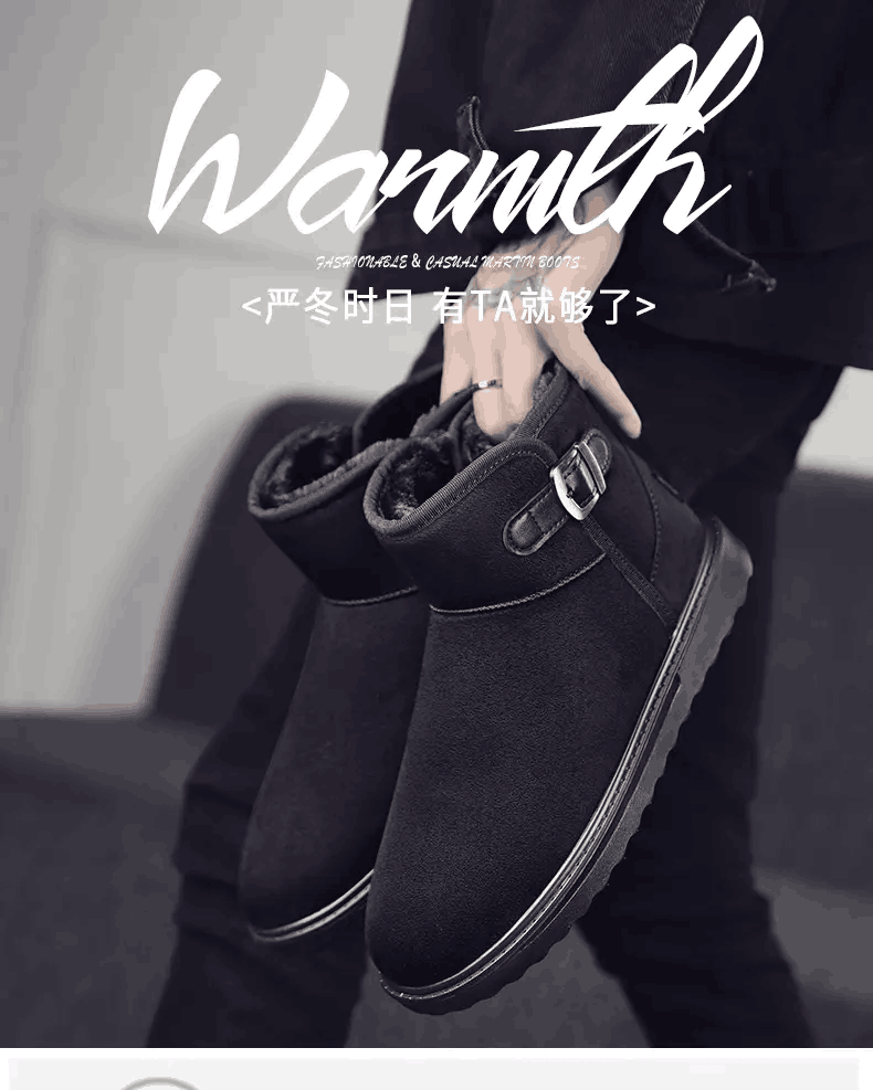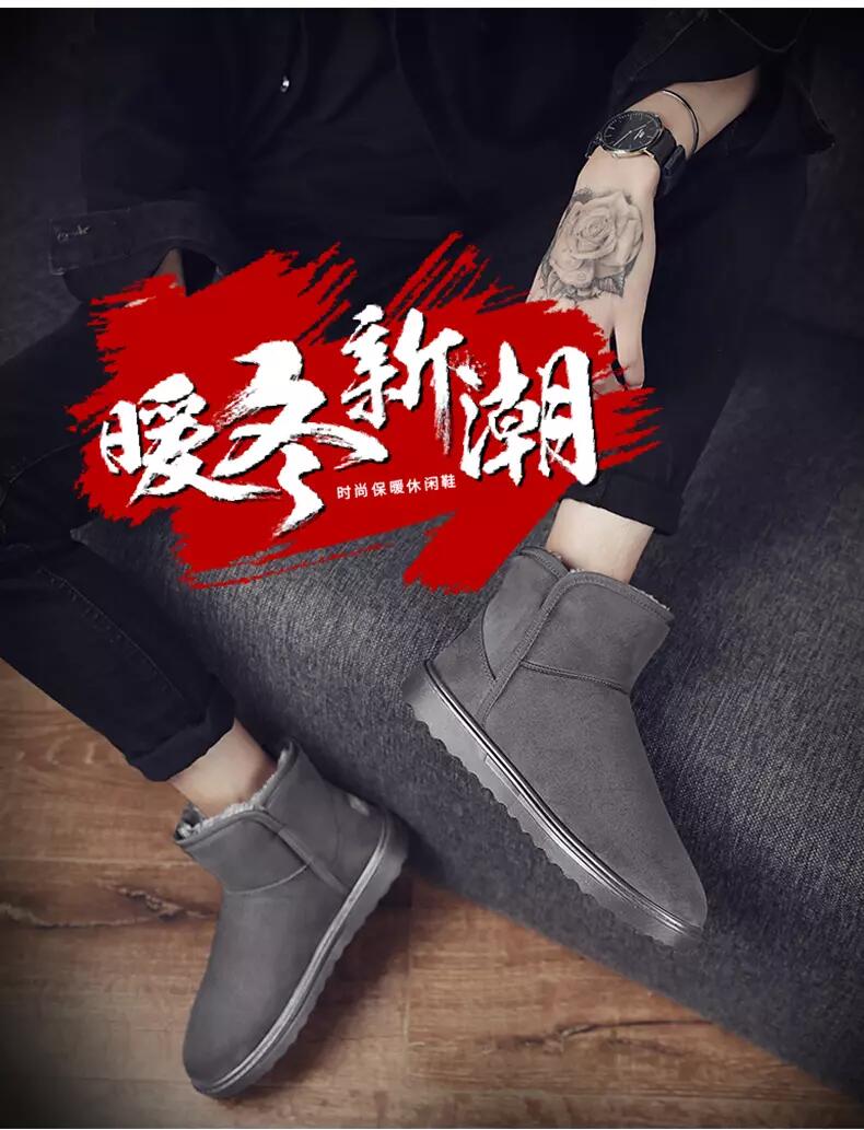冬季新款雪地靴男加绒加厚男士透气保暖短款简约防滑棉鞋户外短靴