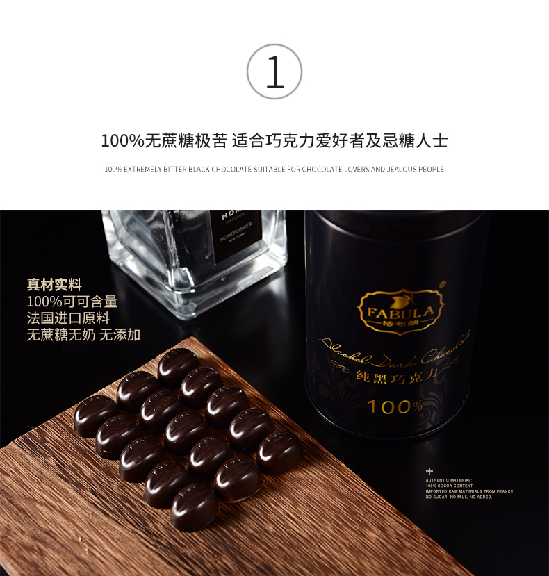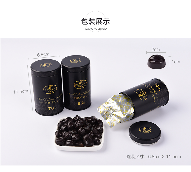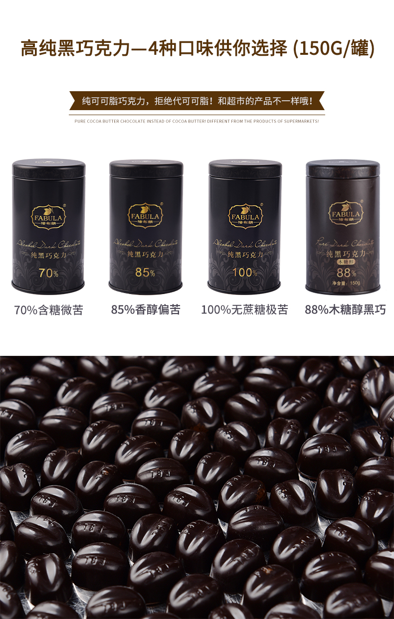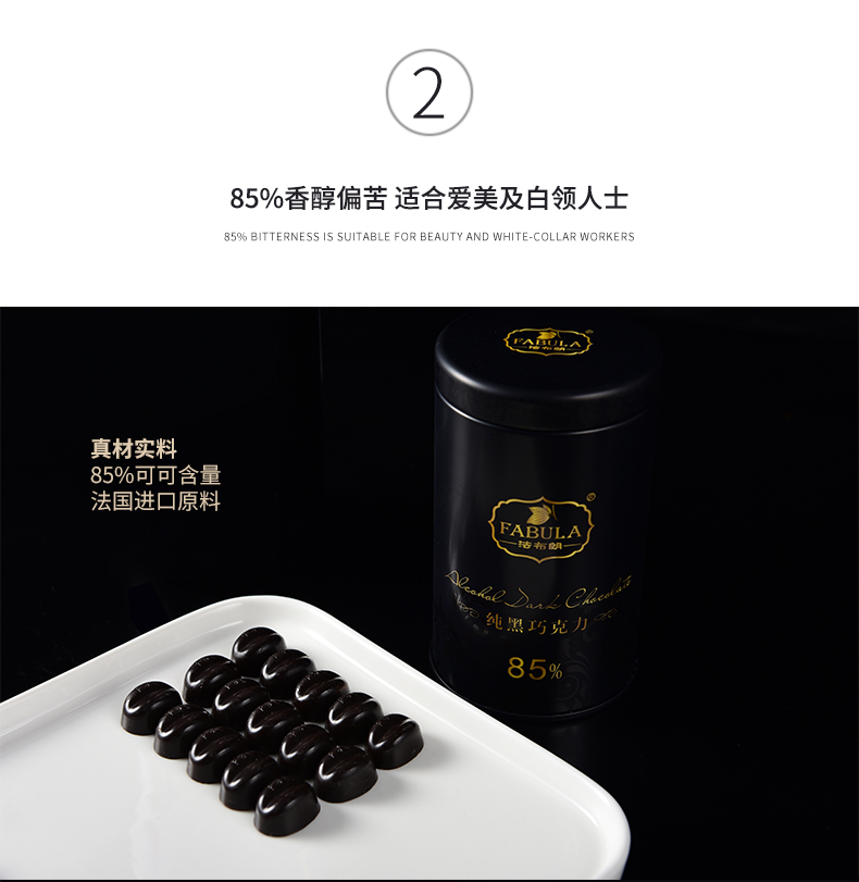 法布朗100%纯可可脂无蔗糖85%含糖黑巧克力罐装礼盒 烘焙零食散装