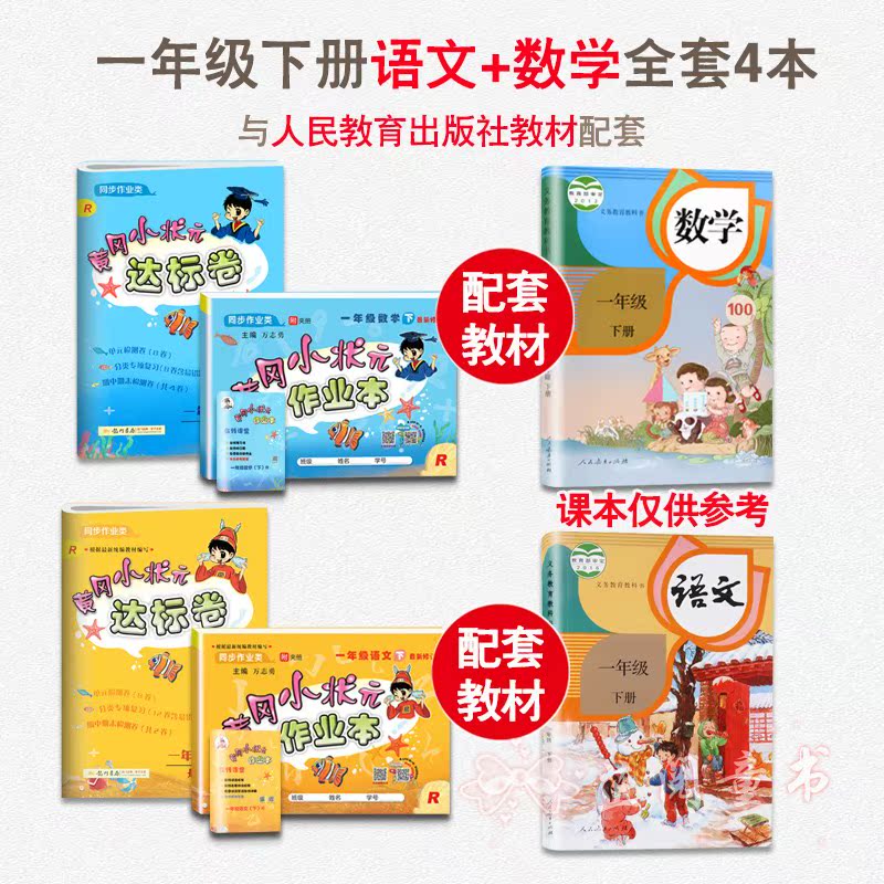 4本黄冈小状元一年级数学语文下册作业本达标卷人教版小学1年级同步训练一课一练黄岗小状元同步练习天天练单元期中期末测试