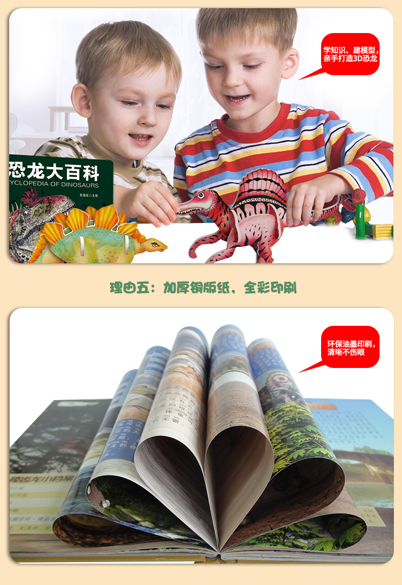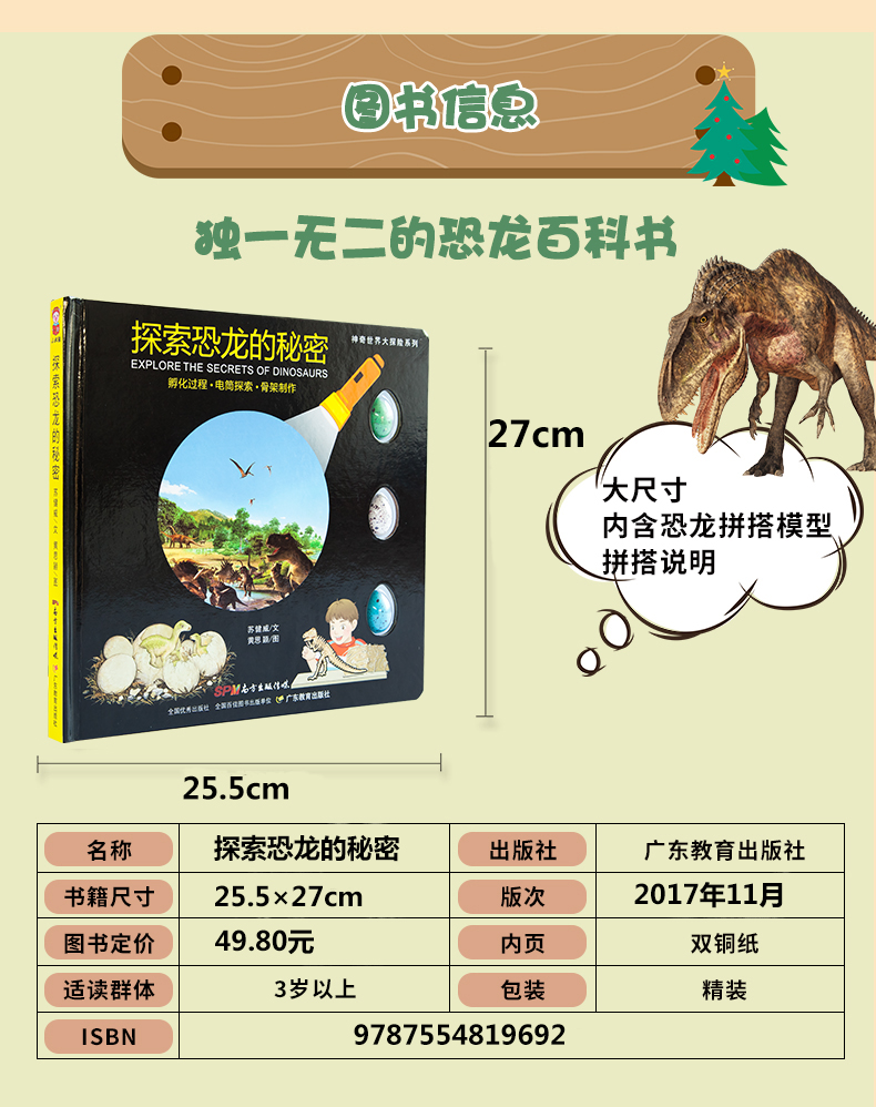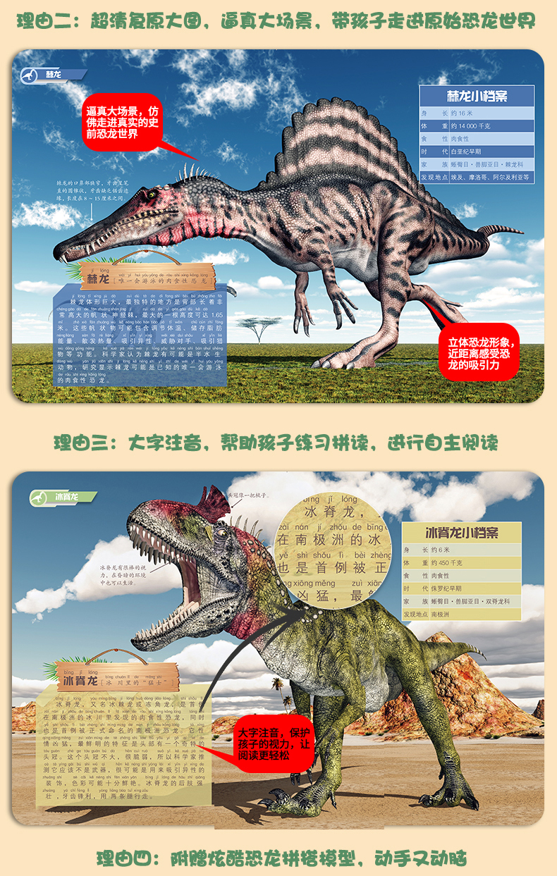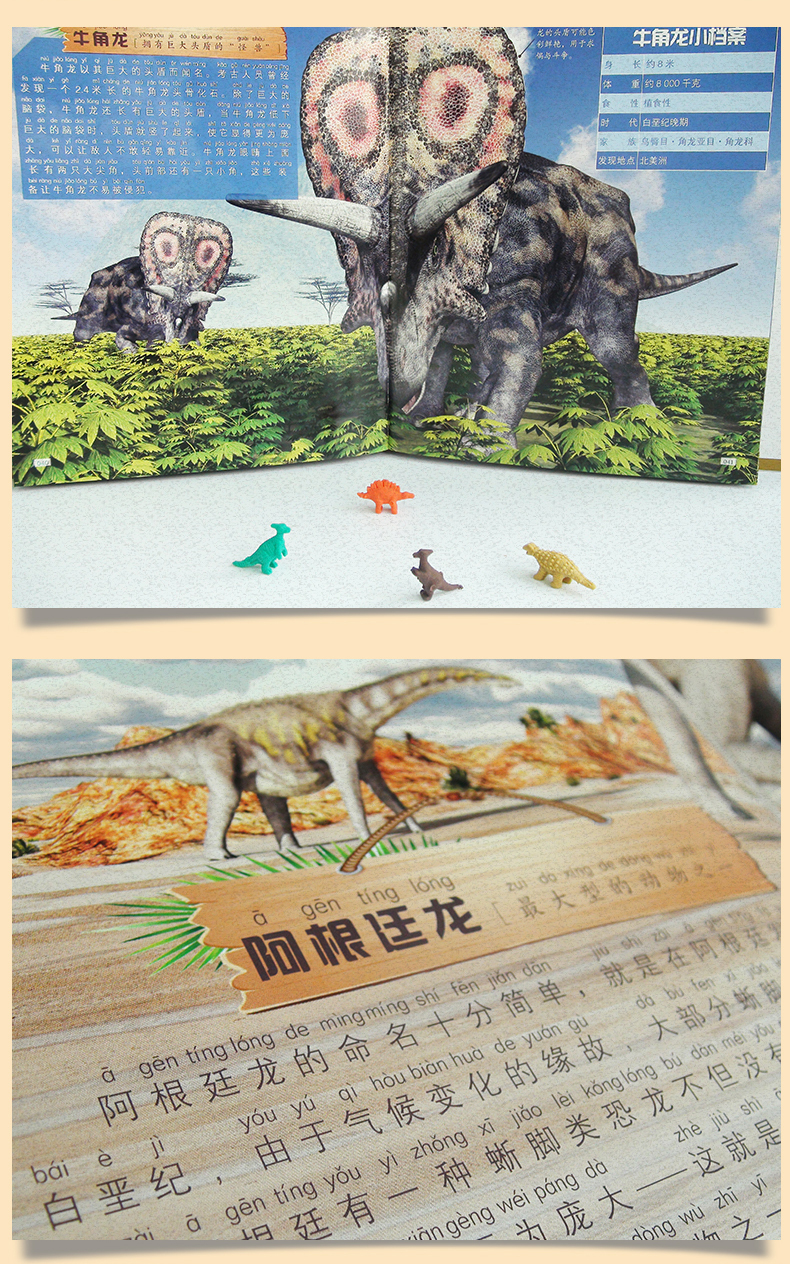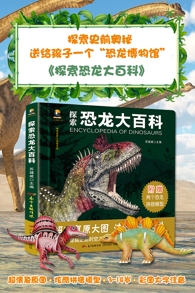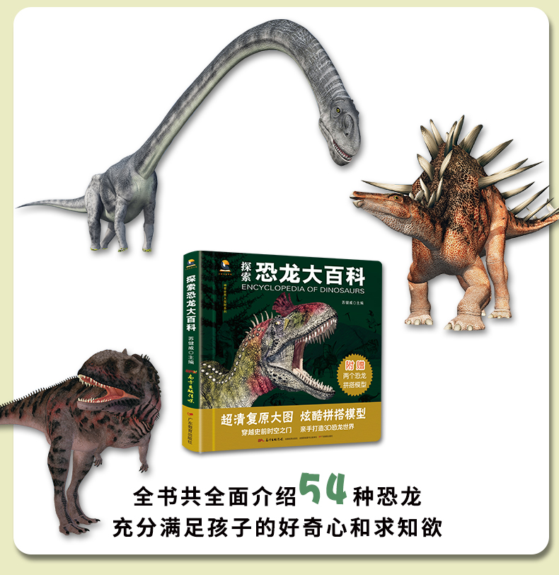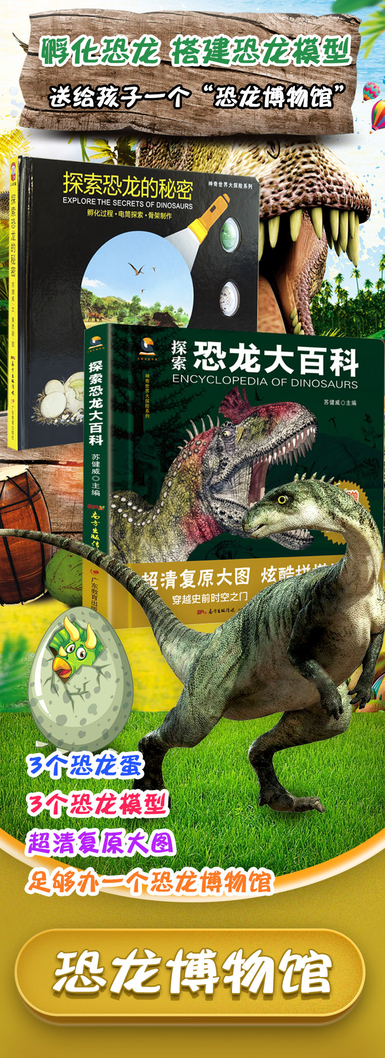 国企广东教育出版社全书3D立体大幅高清彩图,全书精装,带拼音注解,带孩子走进恐龙的世界,满足孩子的好奇心,高清复原远古时代的恐龙世界。