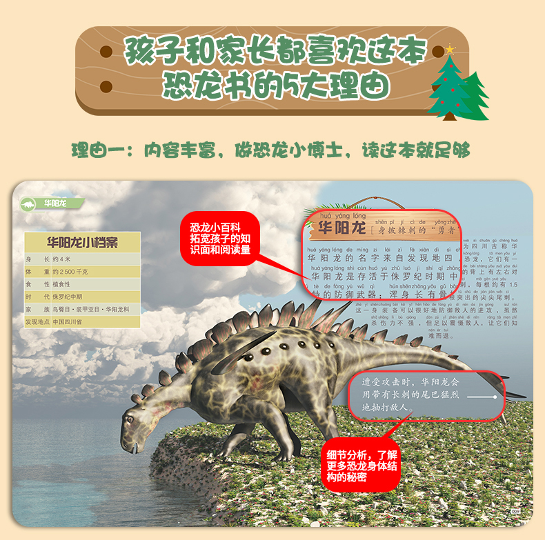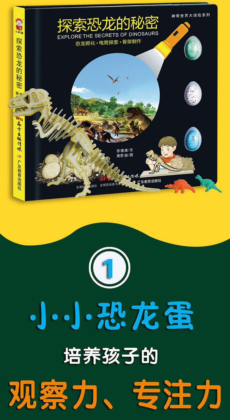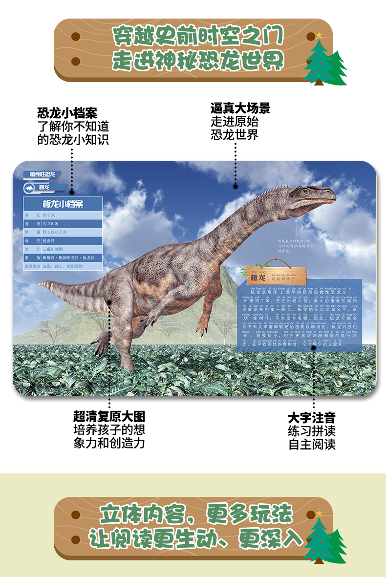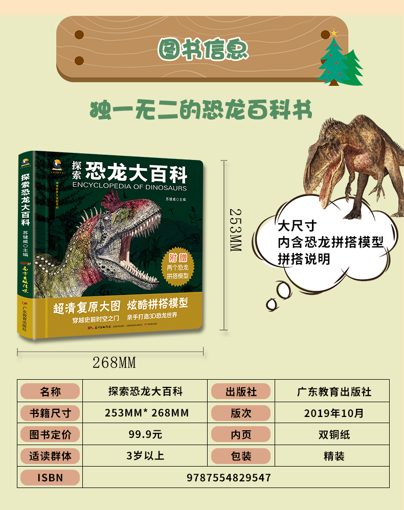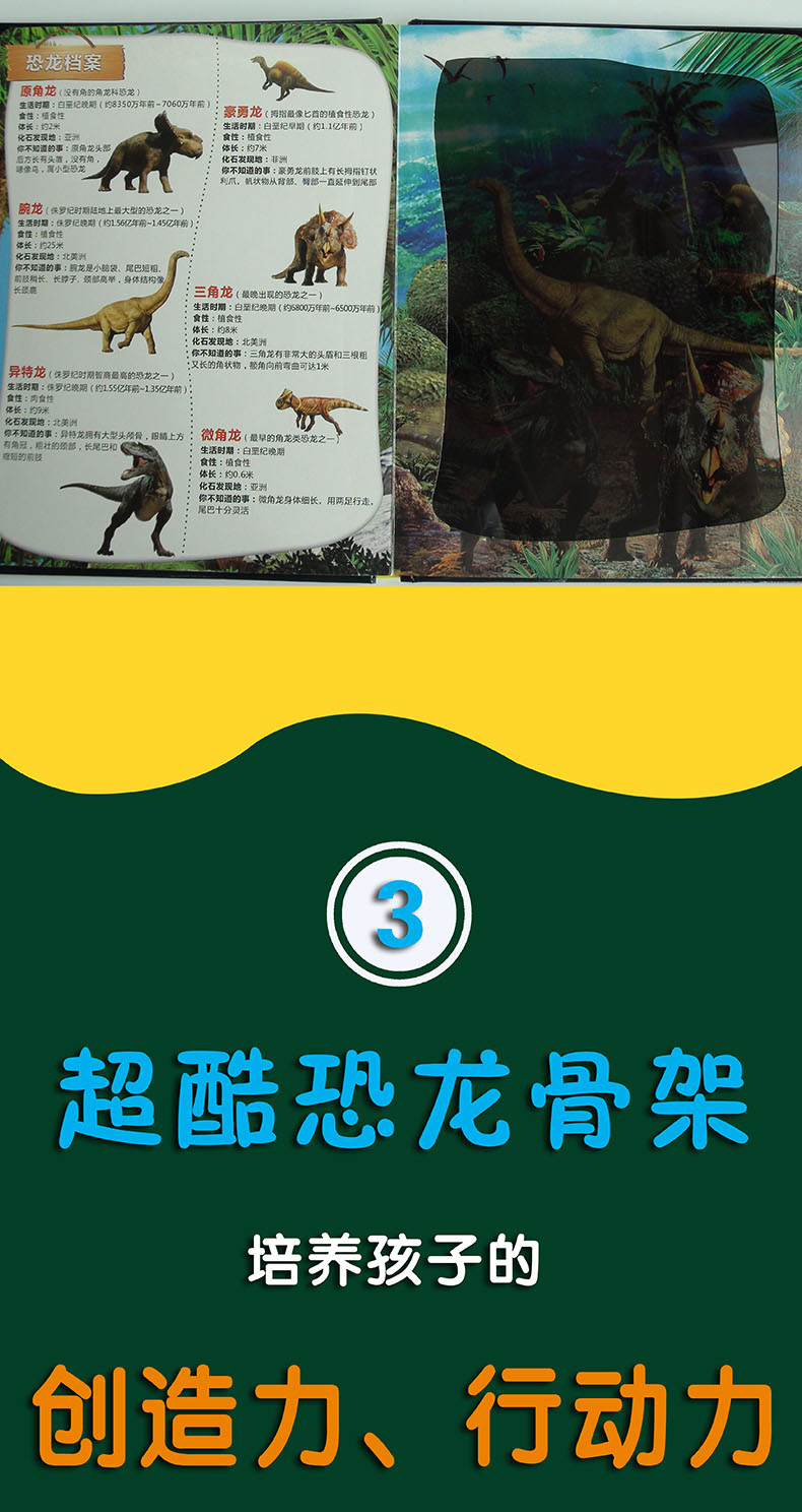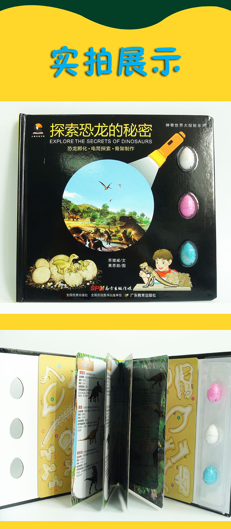 国企广东教育出版社全书3D立体大幅高清彩图,全书精装,带拼音注解,带孩子走进恐龙的世界,满足孩子的好奇心,高清复原远古时代的恐龙世界。