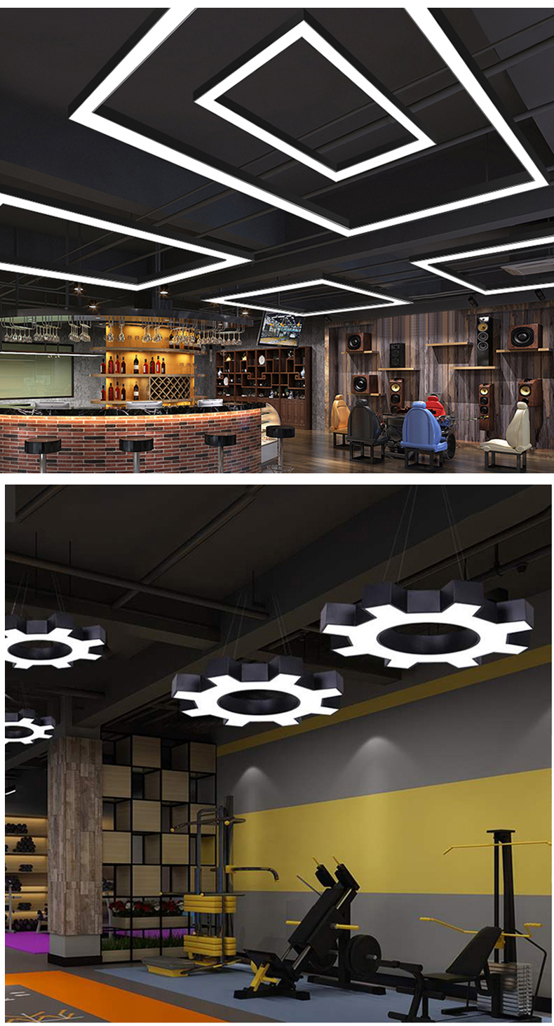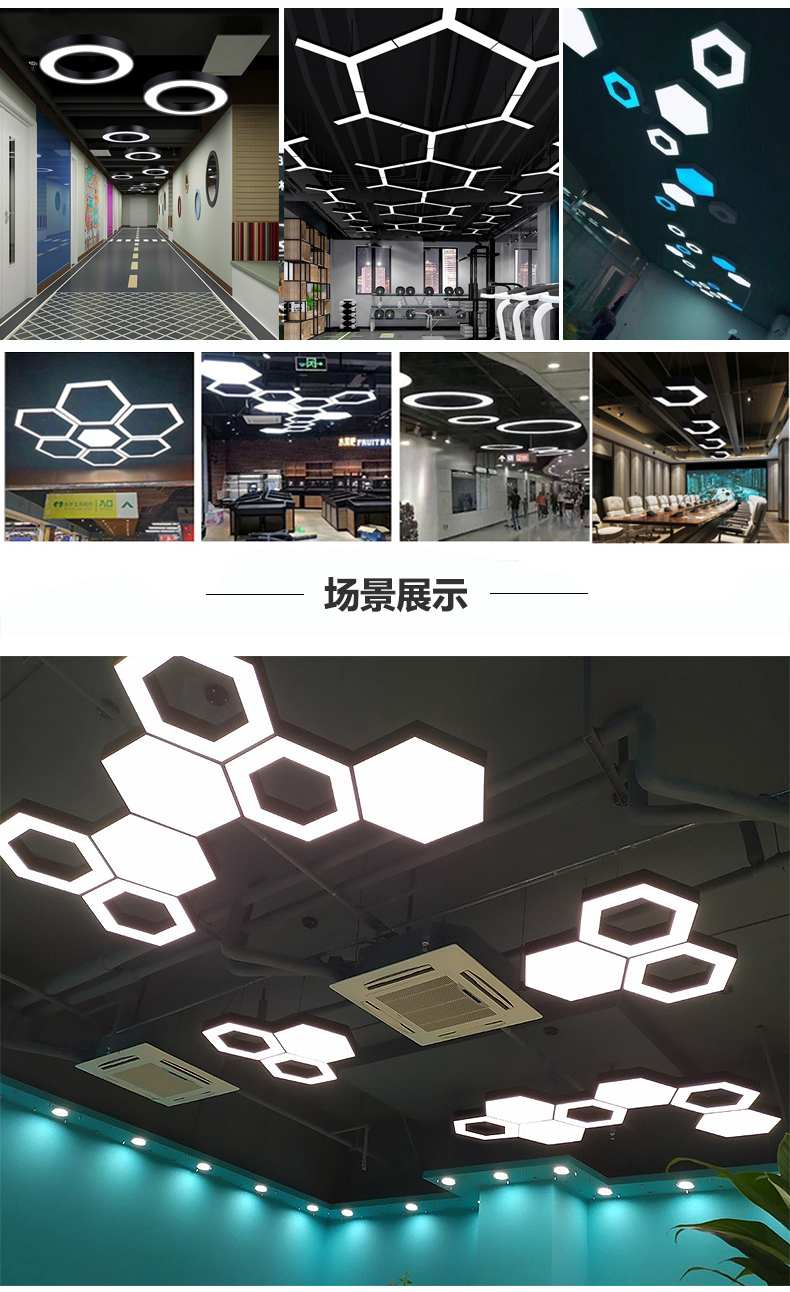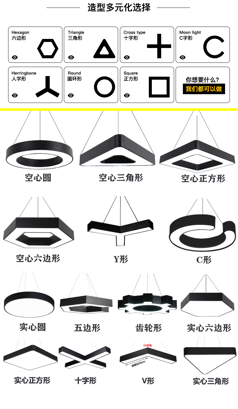 led办公室吊灯简约六边形工业风健身房造型灯商场店铺装饰灯创意异形灯具