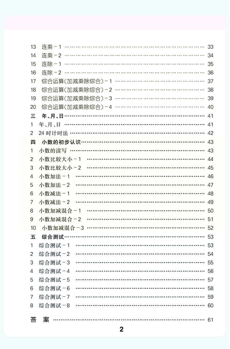 三年级口算题卡下册人教版 小学3年级数学思维训练每天100道口算同步训练计算能手加减乘除混合运算天天练心算速算寒假作业大通关