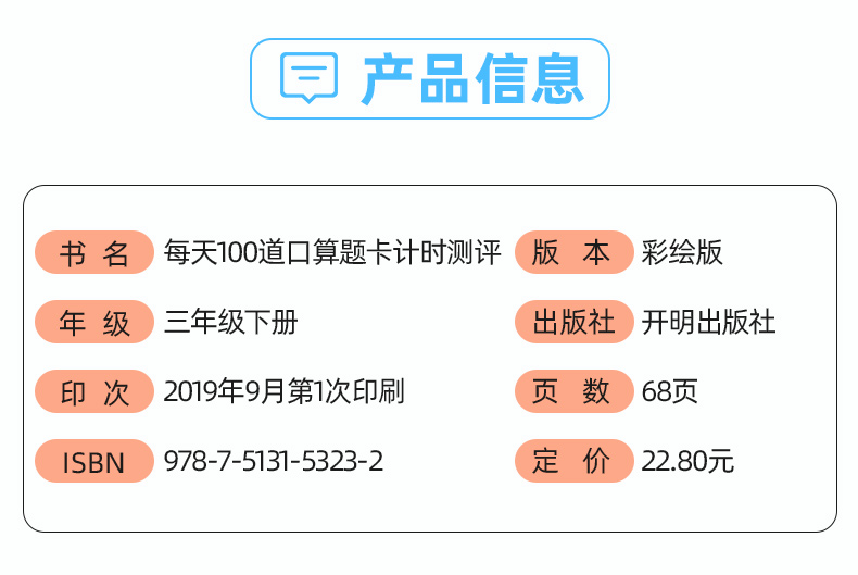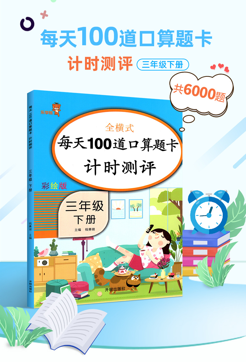 2019新版三年级口算题卡下册人教版,图文并茂,大开本,与三年级下册课本配套,一课一练同步进行,让孩子掌握生字和词组,有这本就够了~