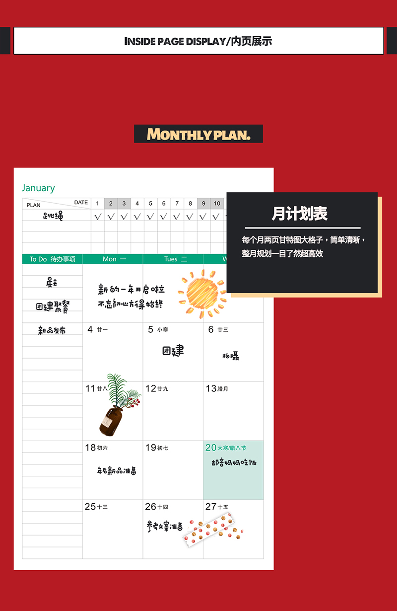 2020年日程本效率管理手册365天计划表工作日历本周计划本每日打卡自律笔记本时间轴定制记事本小随身手帐本
