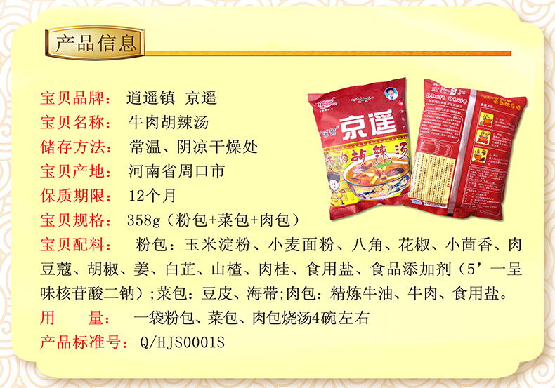 京遥胡辣汤358g 河南特产逍遥镇牛肉味胡辣汤料袋装方便速食早餐