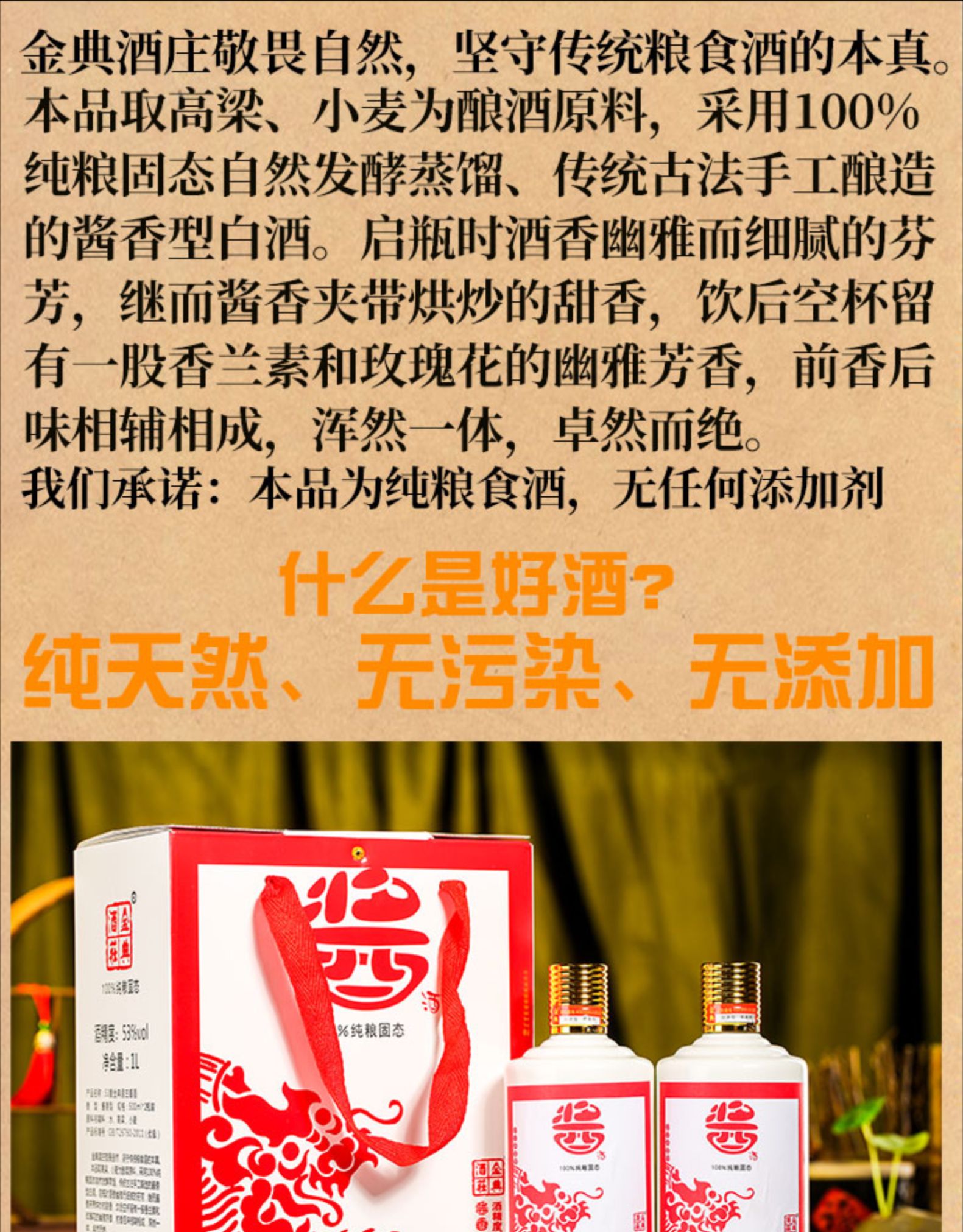 金典酒庄双瓶礼盒装!53度酱香型,不辣喉,酒香尔醇,酱香突出,持久留香,好喝不上头,回味悠长~