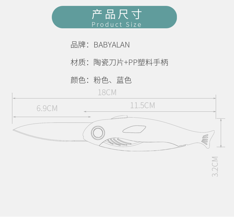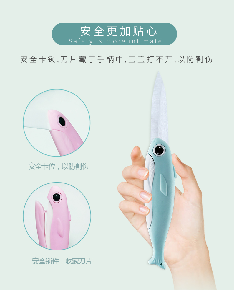 babyalan宝宝小鱼折叠陶瓷刀 辅食工具 食物剪刀水果刀 妈妈防身