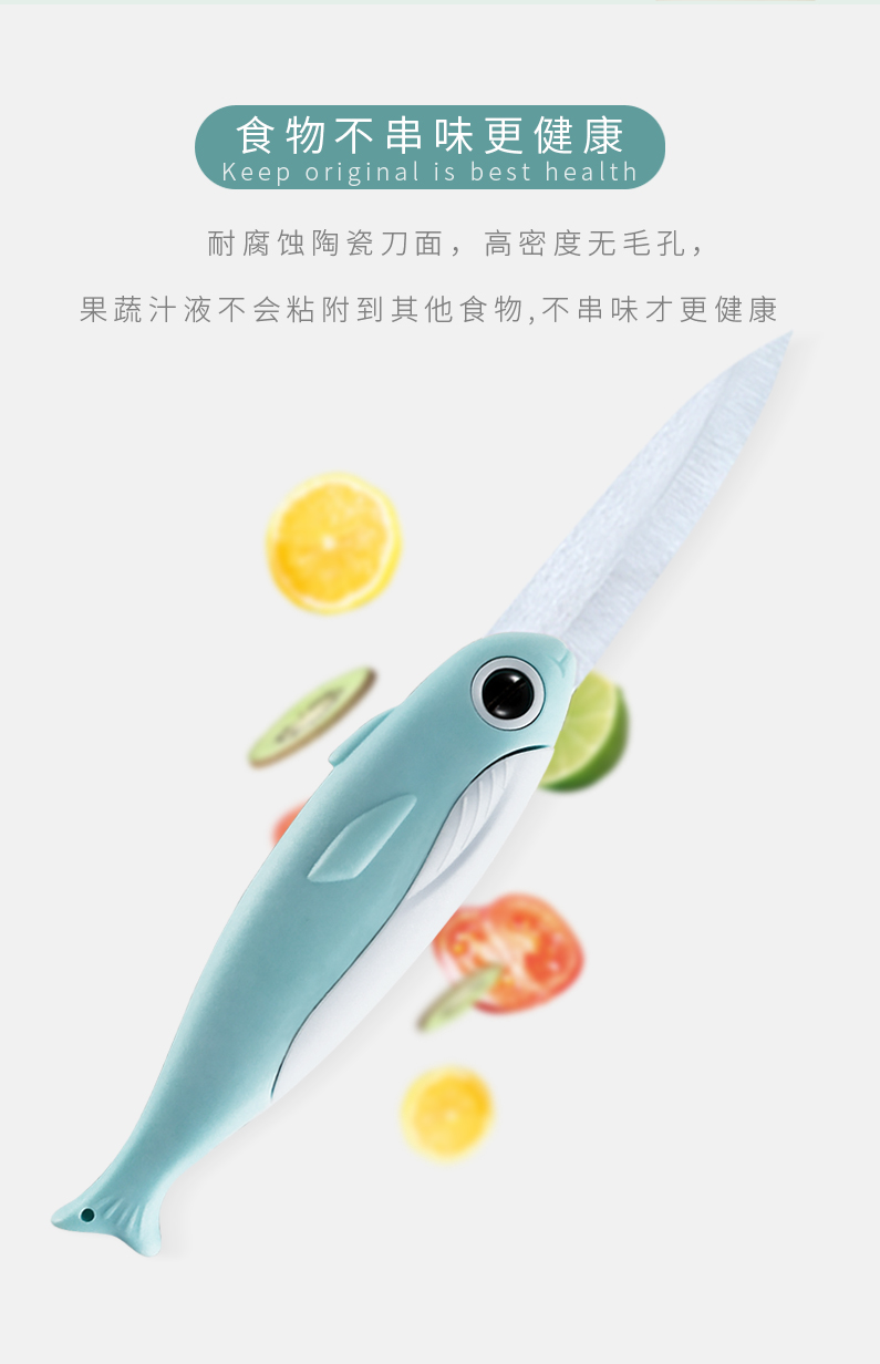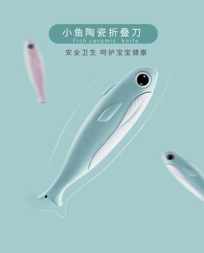 宝宝小鱼折叠陶瓷刀,辅食工具,食物剪刀水果刀妈妈防身,陶瓷材质,锁住辅食营养,不会串味,结实耐用!