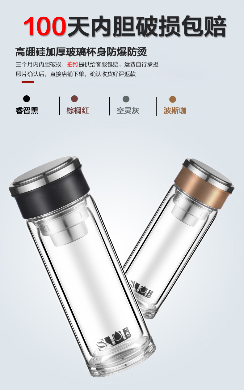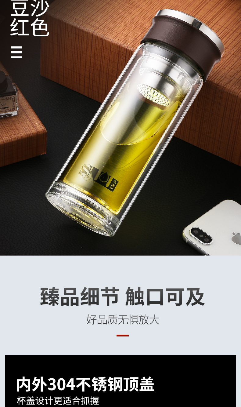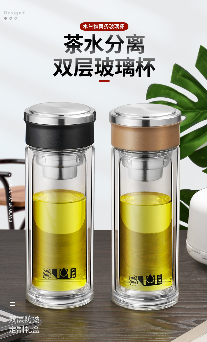 水生物玻璃杯大容量双层泡茶杯,便携男女士车载水杯家用随手杯子,企业团购,定制,印LOGO,个性定制!